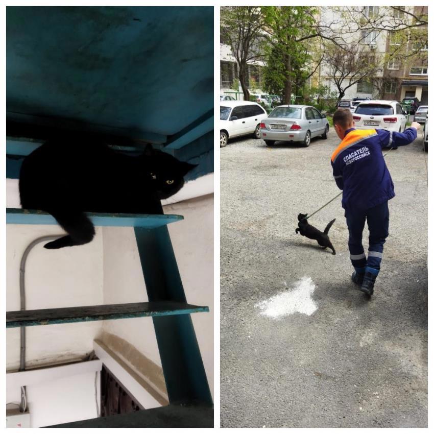 Если вчера стало известно о спасении котика от агрессивных ворон, то сегодня уже людей спасали от котика. Большой черный ворвался в подъезд МКД и устроил там самый настоящий дебош.