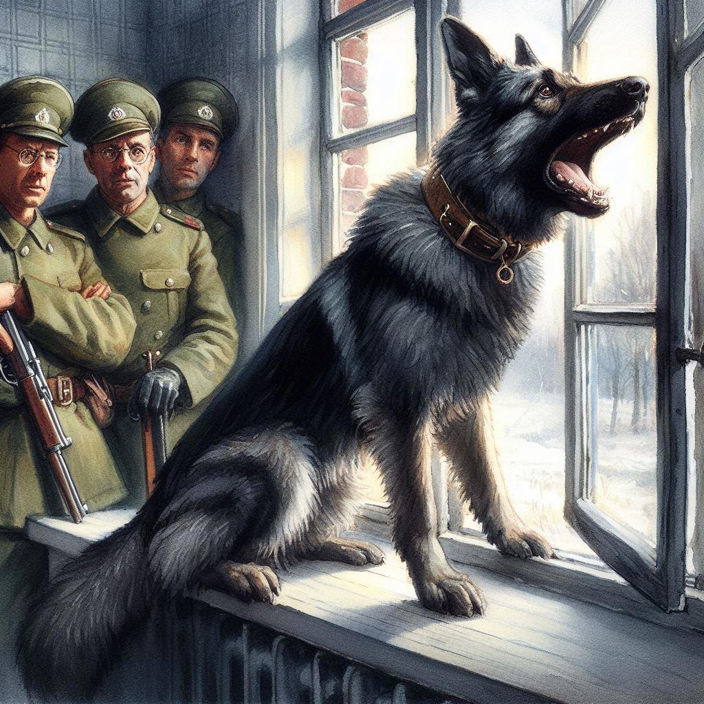 Через короткое время в здании Варьете появилось следствие в сопровождении остроухой, мускулистой, цвета папиросного пепла собаки с чрезвычайно умными глазами. Среди служащих Варьете тотчас разнеслось шушуканье о том, что пес - не кто другой, как знаменитый Тузбубен. И точно, это был он. Поведение его изумило всех. Лишь только Тузбубен вбежал в кабинет финдиректора, он зарычал, оскалив чудовищные желтоватые клыки, затем лег на брюхо и с каким-то выражением тоски и в то же время ярости в глазах пополз к разбитому окну. Преодолев свой страх, он вдруг вскочил на подоконник и, задрав острую морду вверх, дико и злобно завыл.