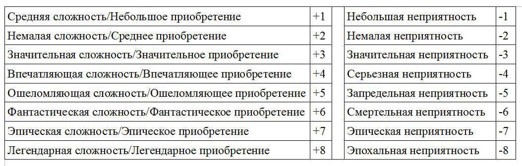 Но действие может все равно провалиться, потому что есть Уровни Сложности (УС). Их градация такова: