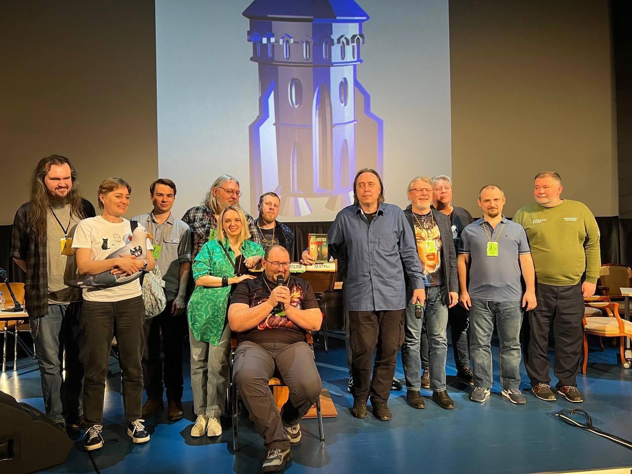 Напоследок — общее фото участников первой и второй мастерской в заключительный вечер РосКон2024.