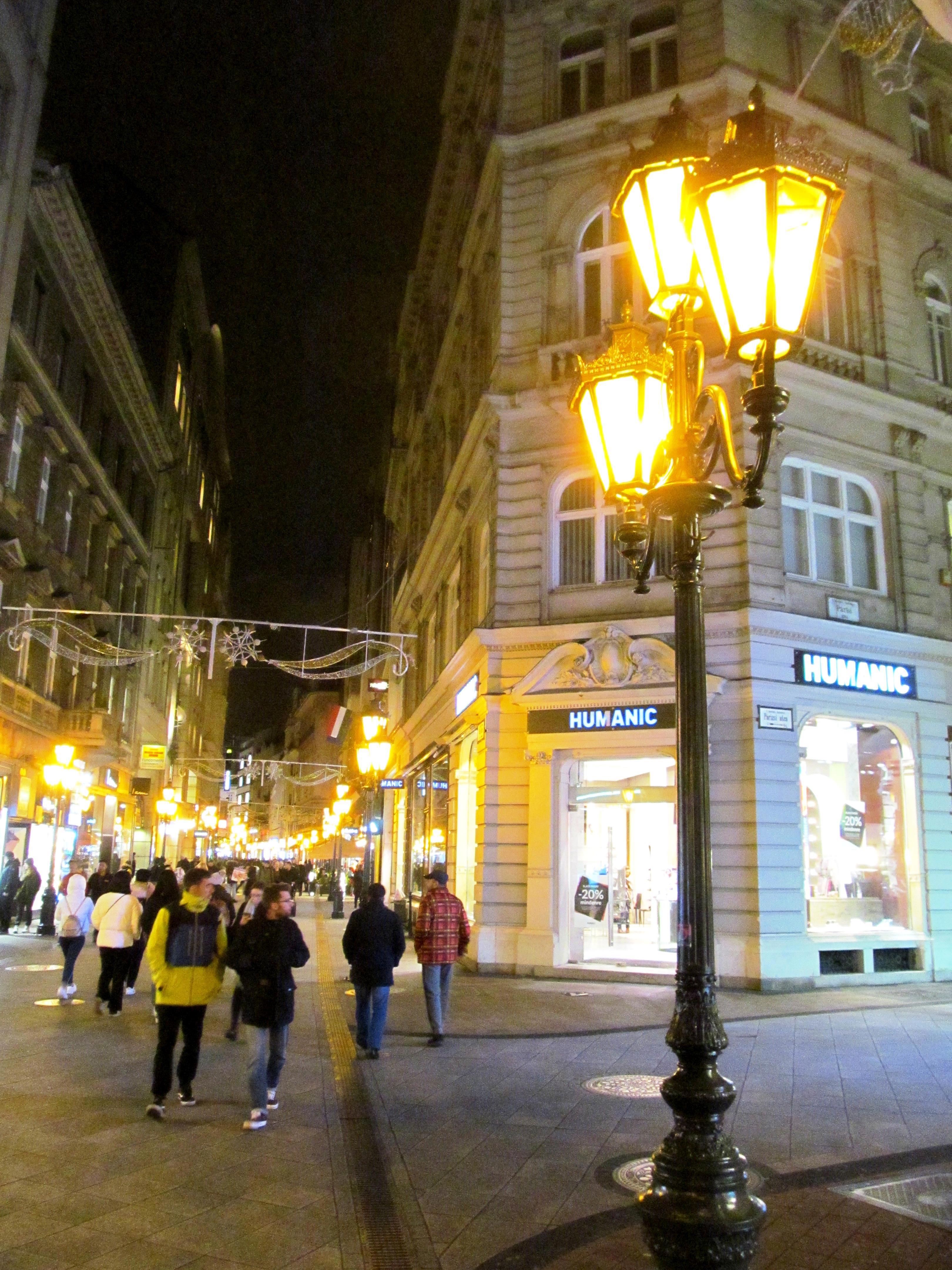 И вышли в город уже вечером – на улицу Ваци…  Модная-пешеходная. И уже украшенная к Рождеству!