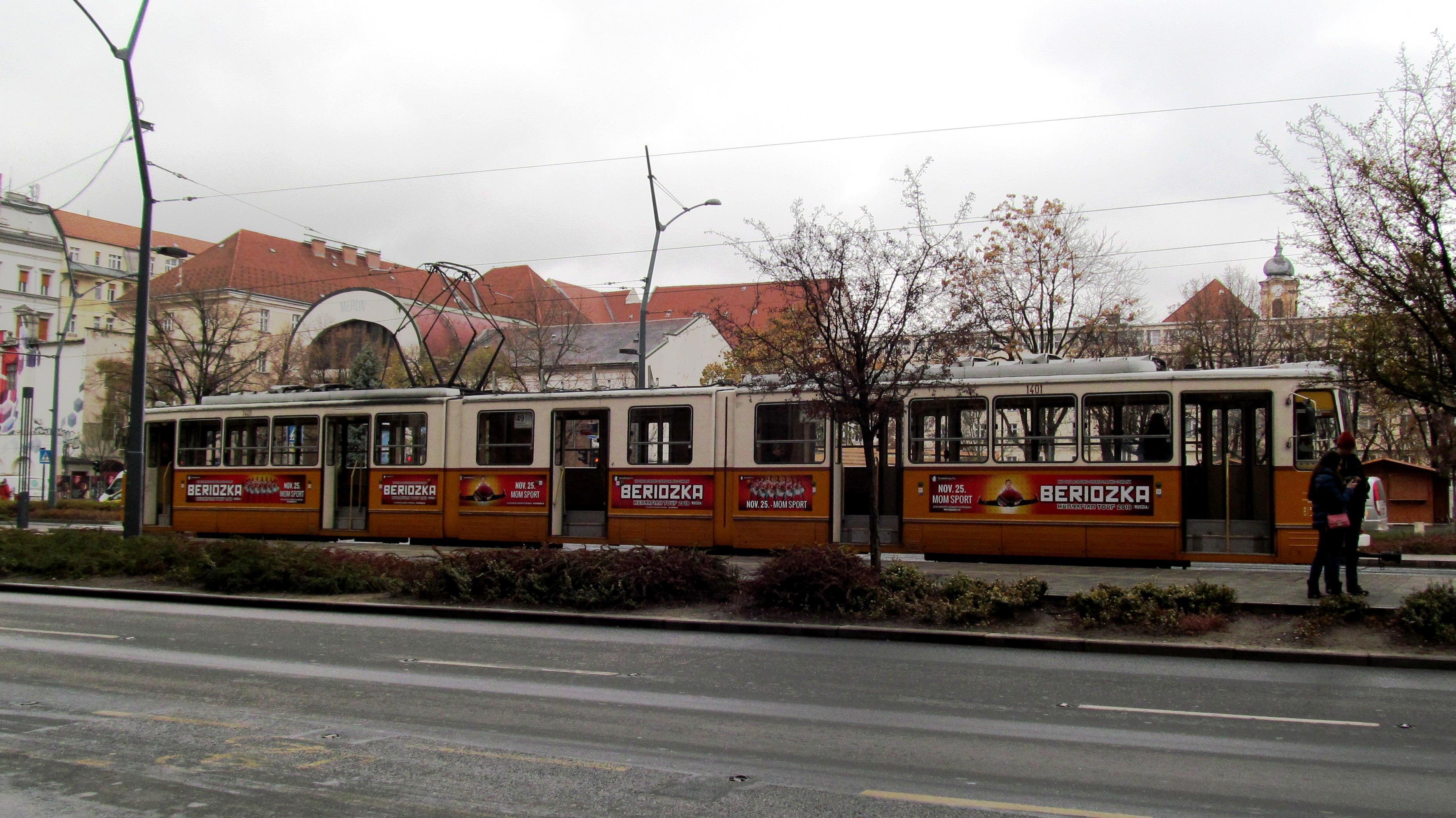 По пути остановились на автобусной и трамвайно остановке – прямо посреди площади. Здесь нам ночью – точнее, уже под утро – садиться на автобус в аэропорт. Вот и табличка на остановке… Интересно только - в какую строну…