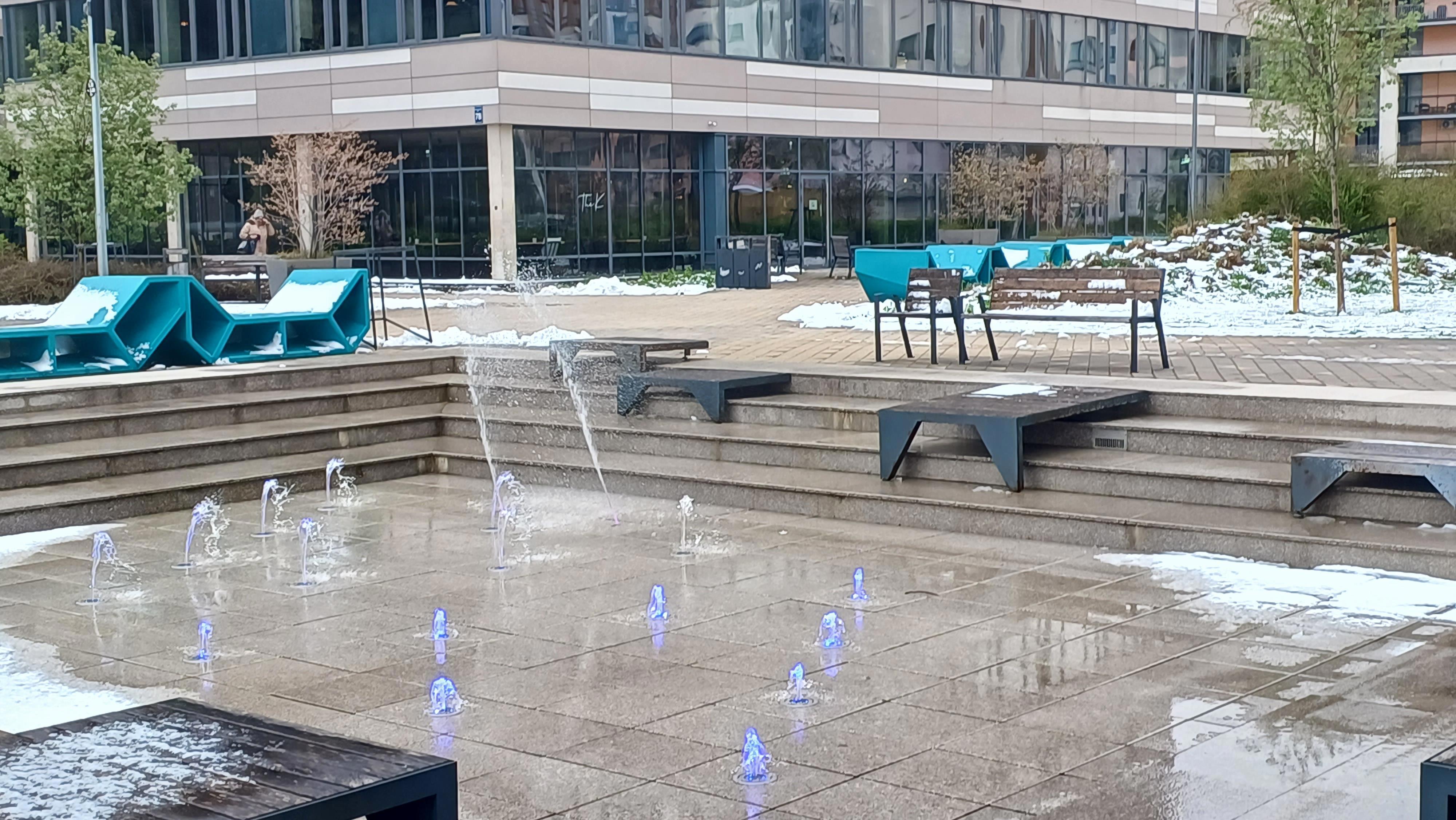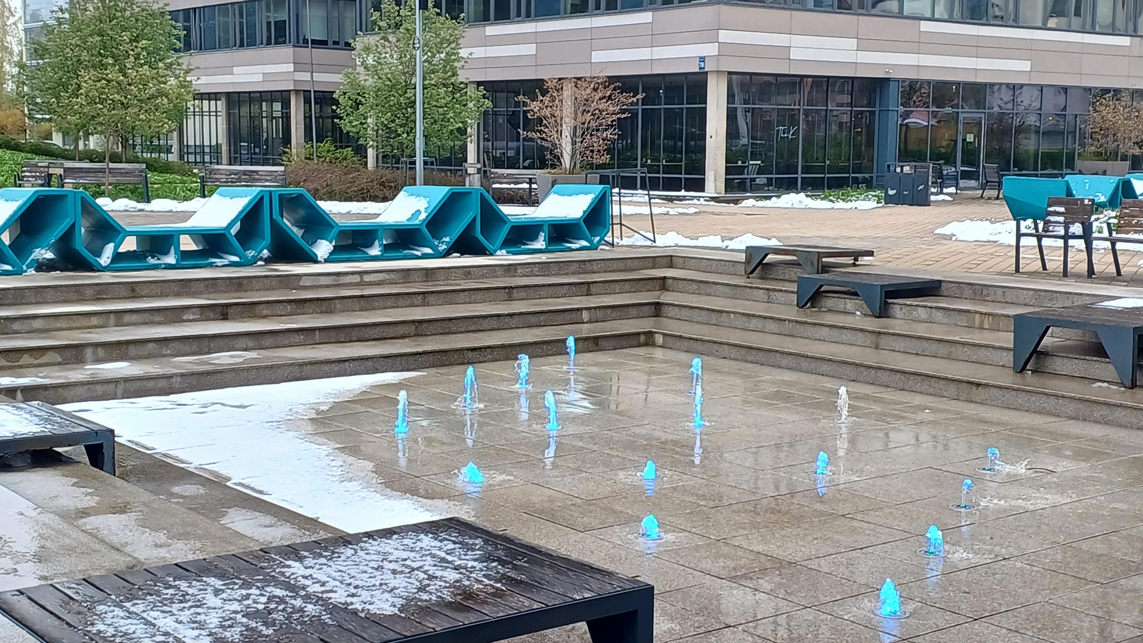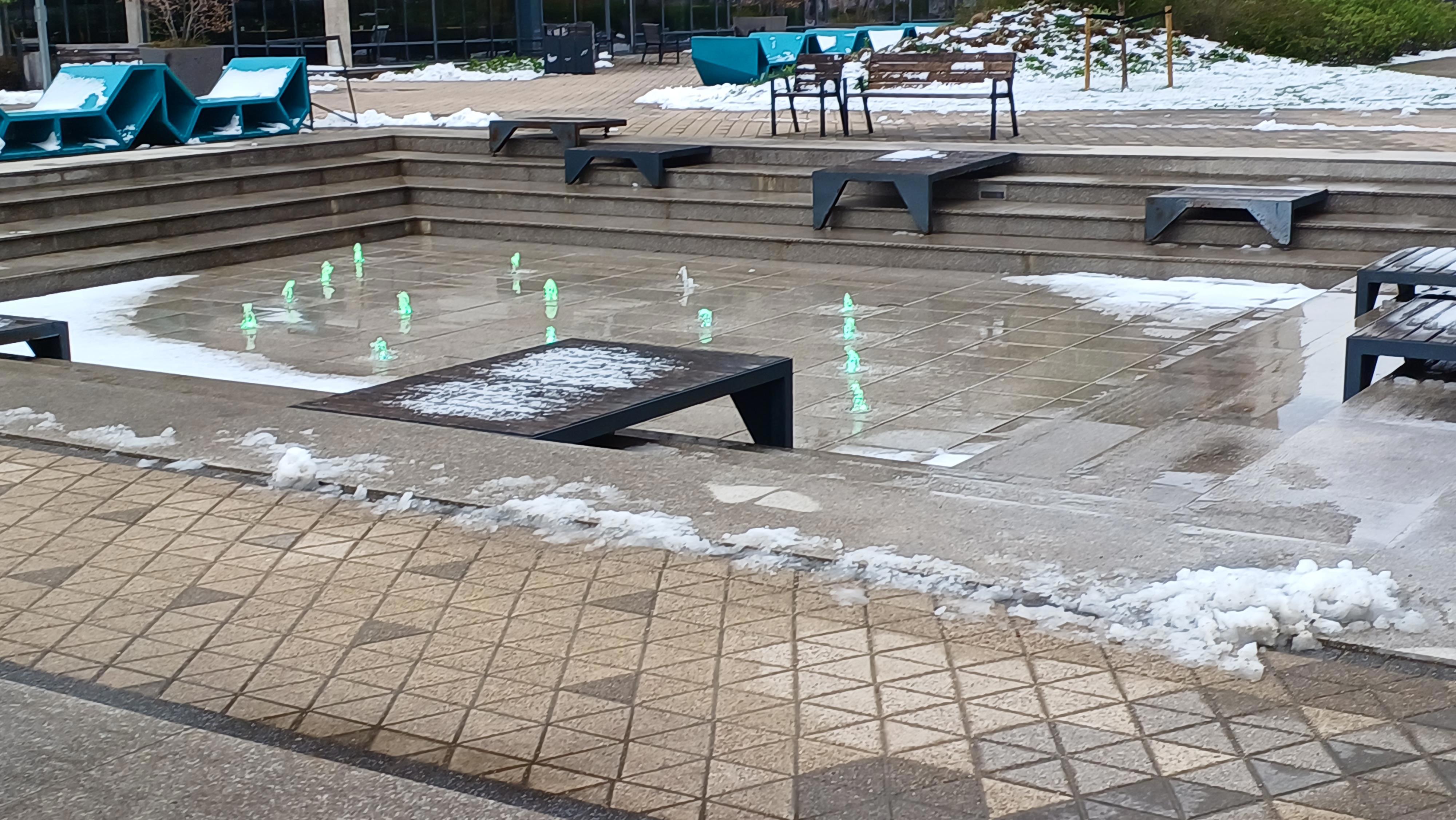 Фонтан на Новой Тейке вызывает весну или подражает фонтанам в Петергофе. Сходство в том, что фонтан функционирует при наличии снежного покрова.