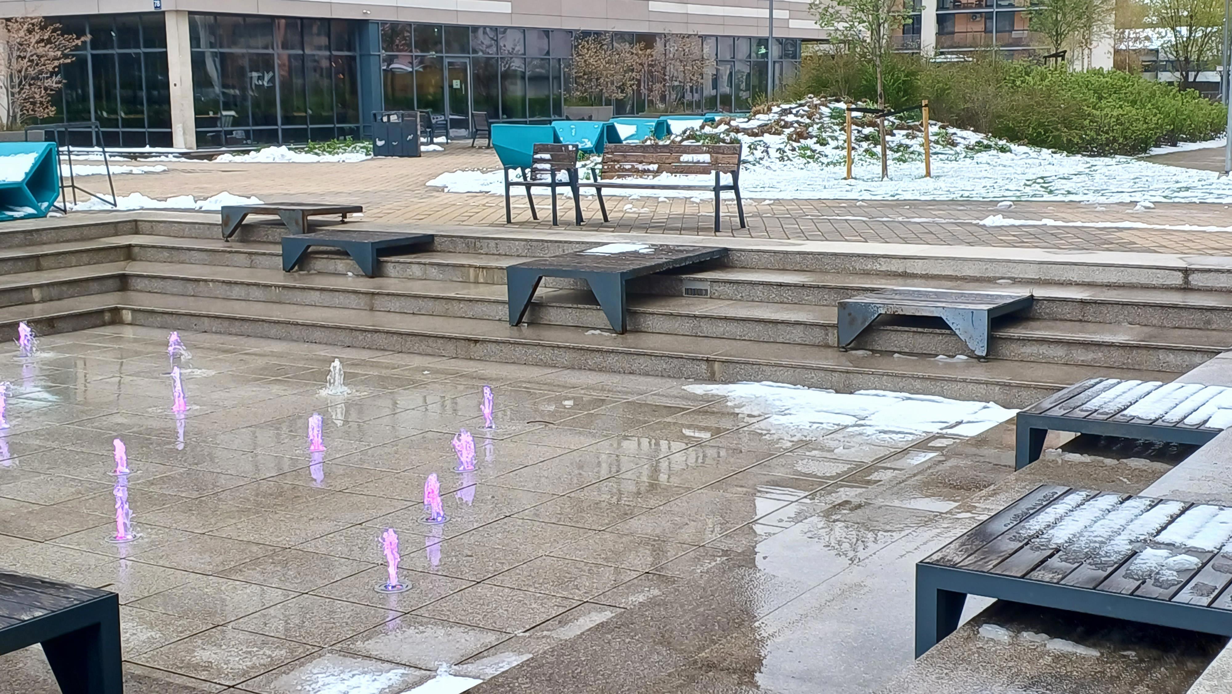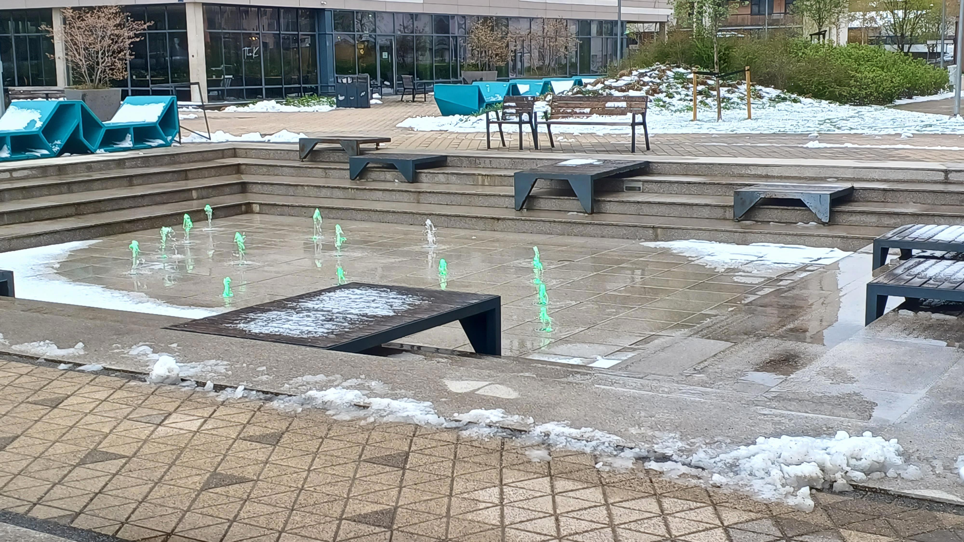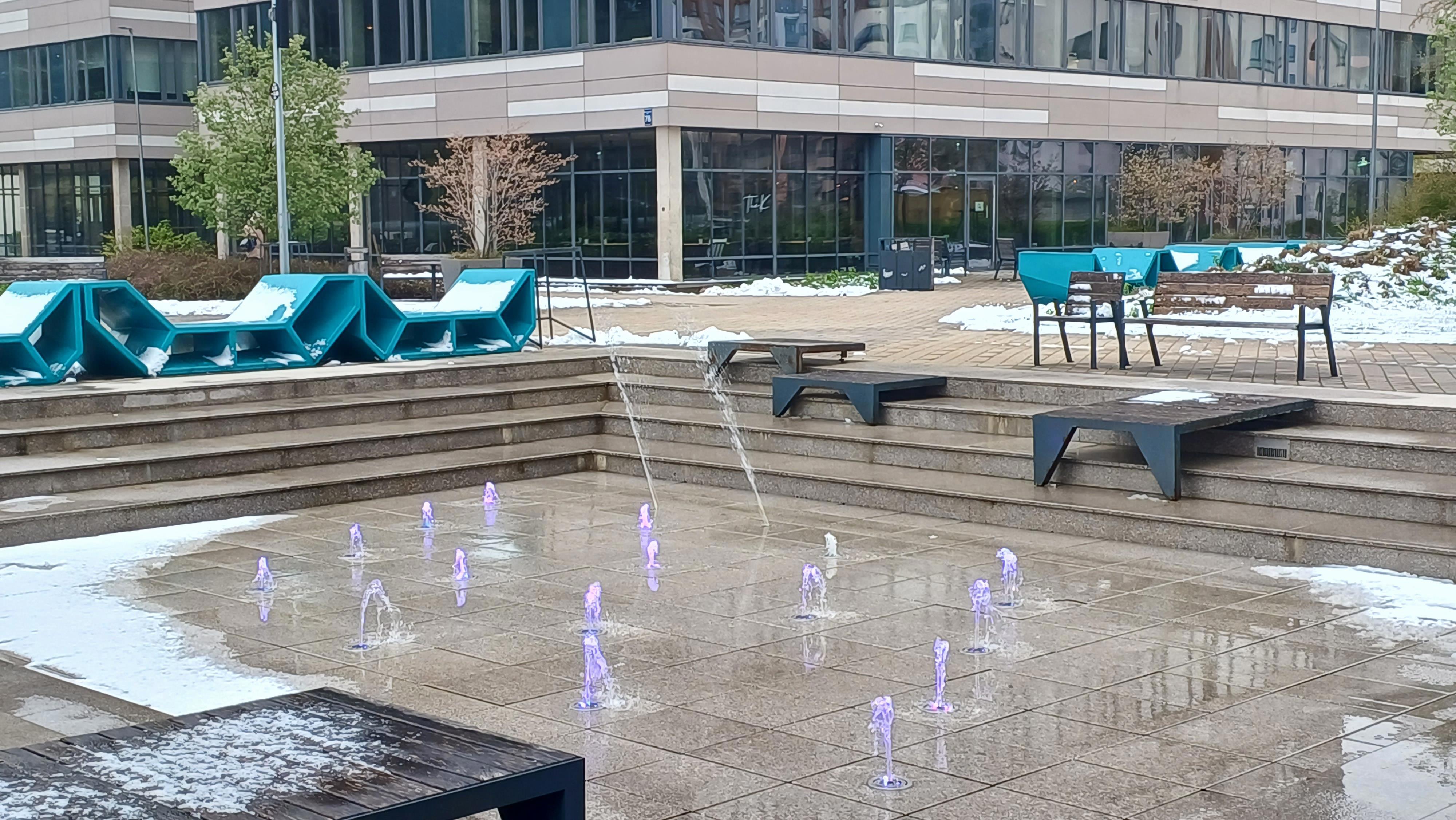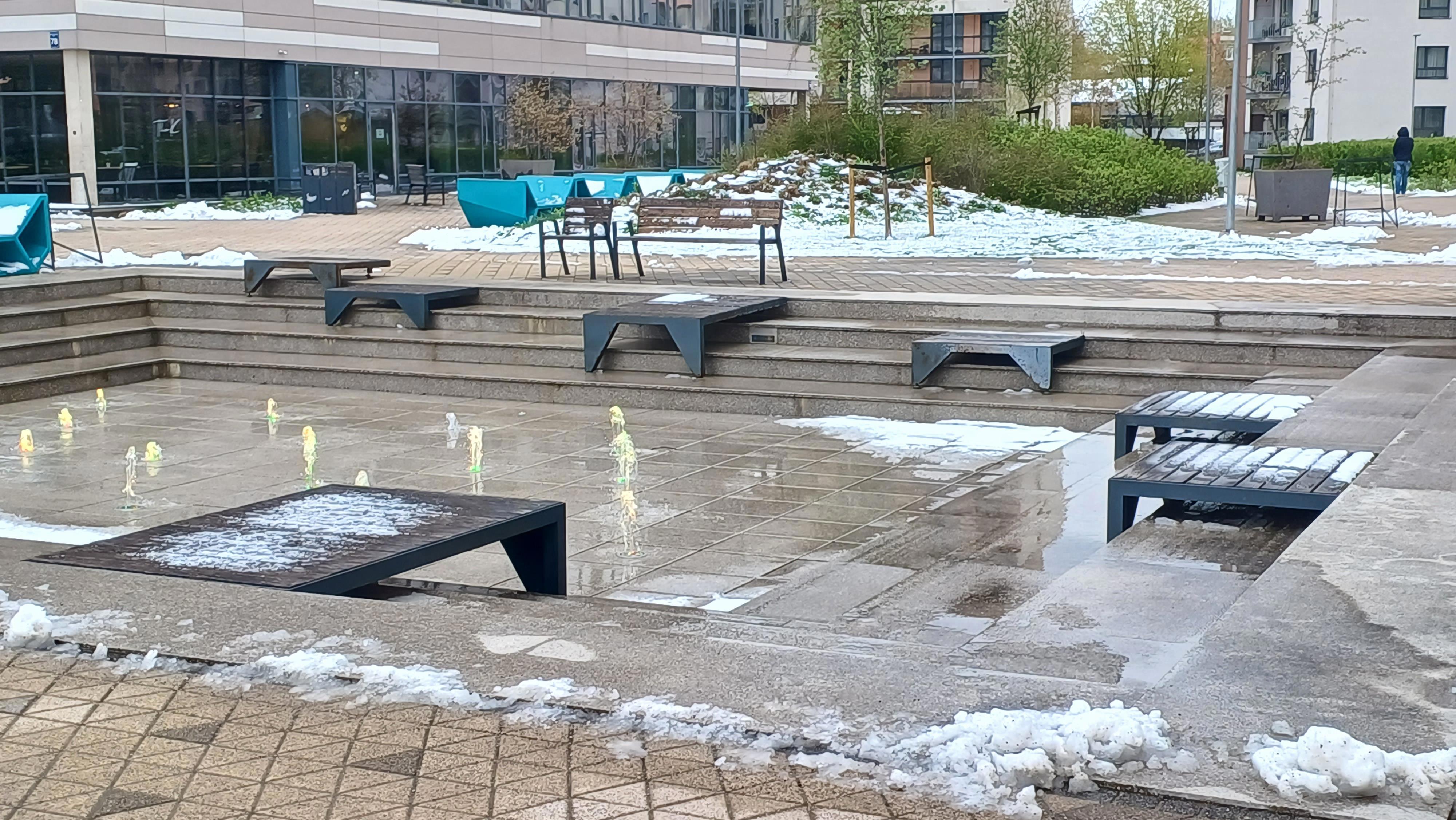 Фонтан на Новой Тейке вызывает весну или подражает фонтанам в Петергофе. Сходство в том, что фонтан функционирует при наличии снежного покрова.