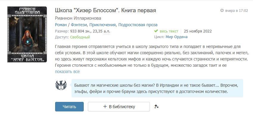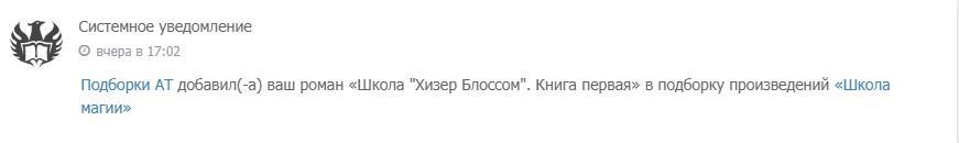 АТ добавил мой роман "школа "Хизер Блоссом" в подборку "Школа магии". Принимаю поздравления!)