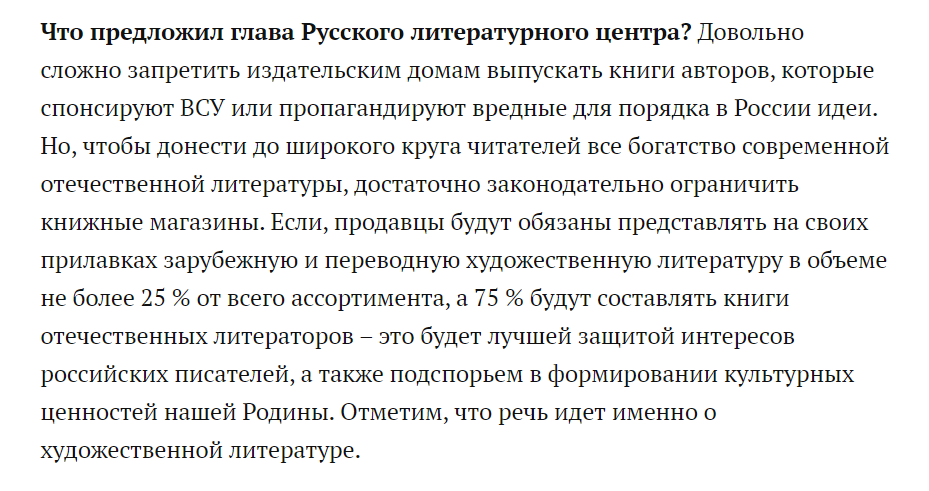 Помимо формирования позитивного образа будущего, а не всей этой гадкой реальности - надо бы ещё хоть как-то, ну хоть частично ограничить распространение вредных для гулагофеодализма идей. Особенно тех, которые основываются на окружающей действительности.