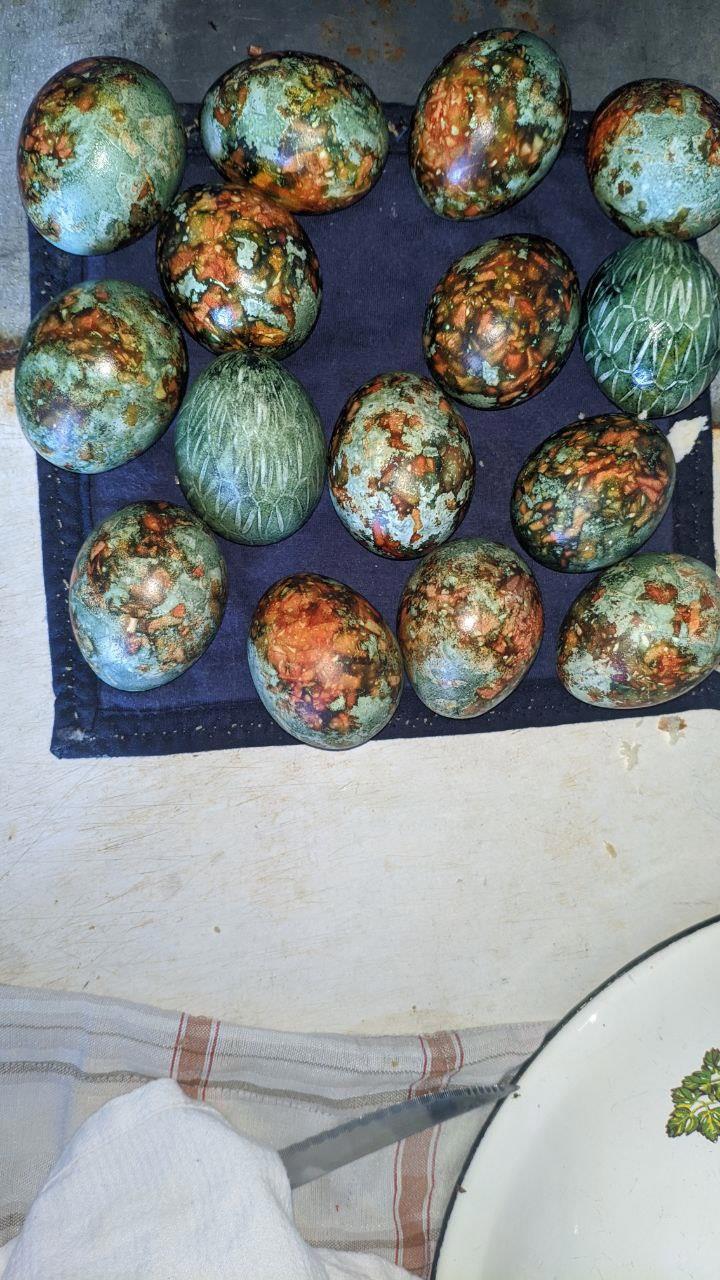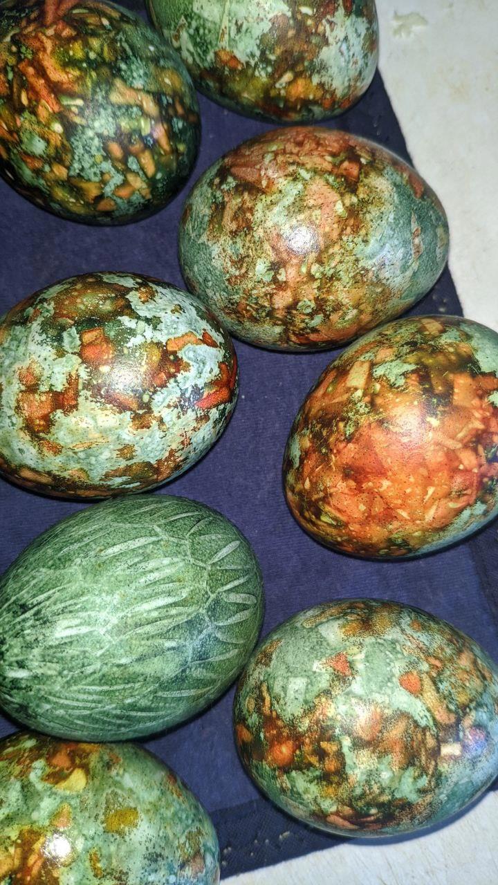 Автор: Сергей СезинСупруга освоила новый способ окраски яиц и получилось.