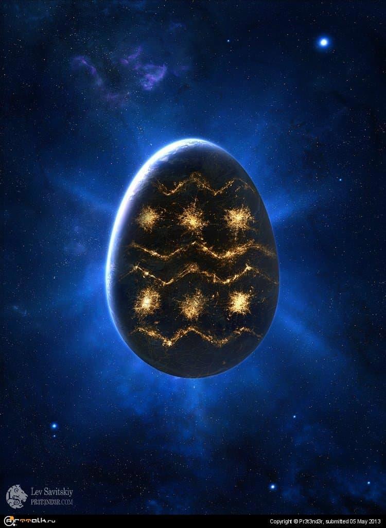 Думаю однажды на Землю прилетел подобный этому корабль. Ещё и разбился, как часто бывает. Отсюда и пошла традиция биться яйцами. Потому что всё, что у нас не делается, всё на удачу! ;)