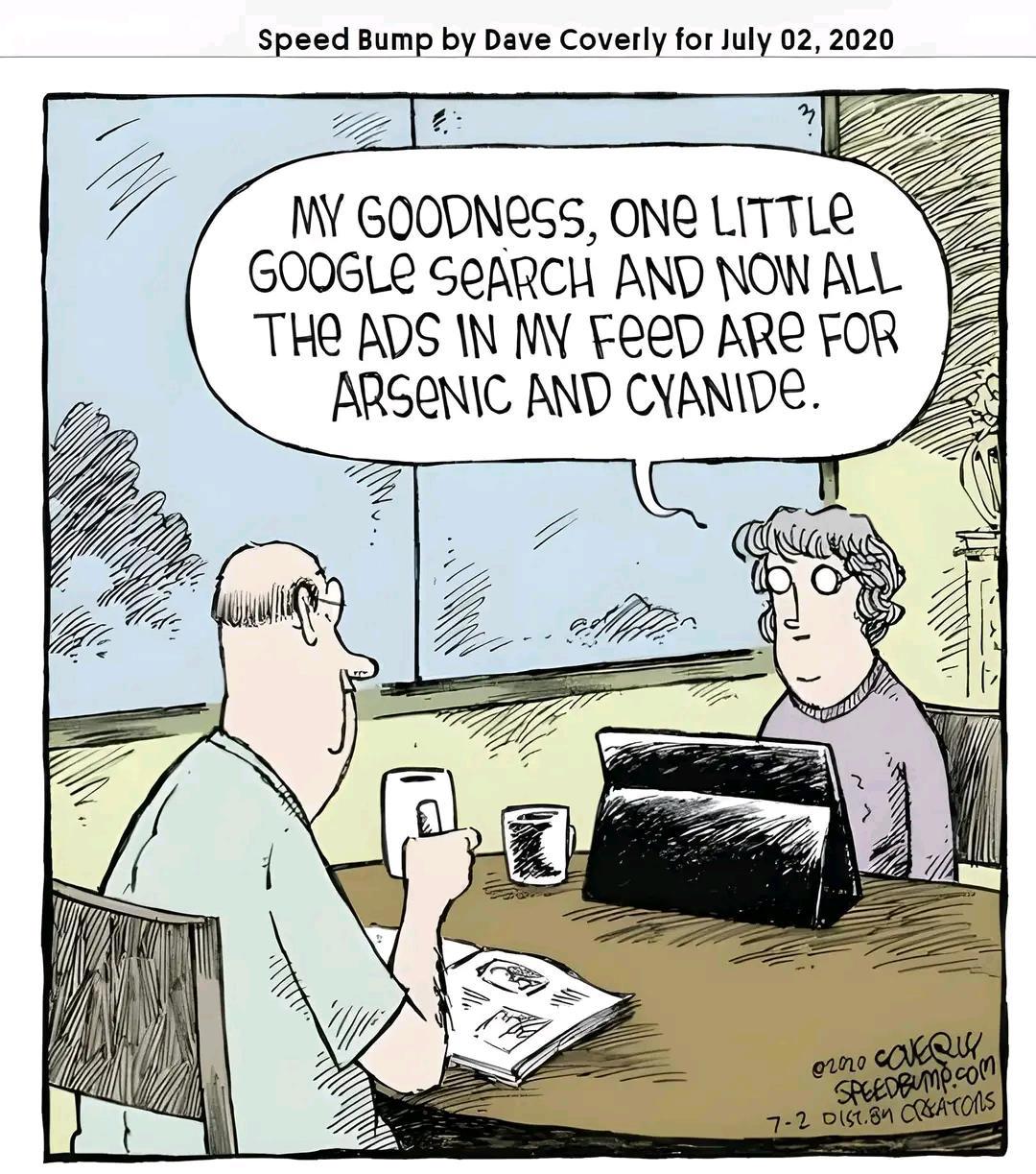 "О Господи, один маленький поиск в Гугле, и теперь вся реклама в моей ленте про мышьяк и цианид..."