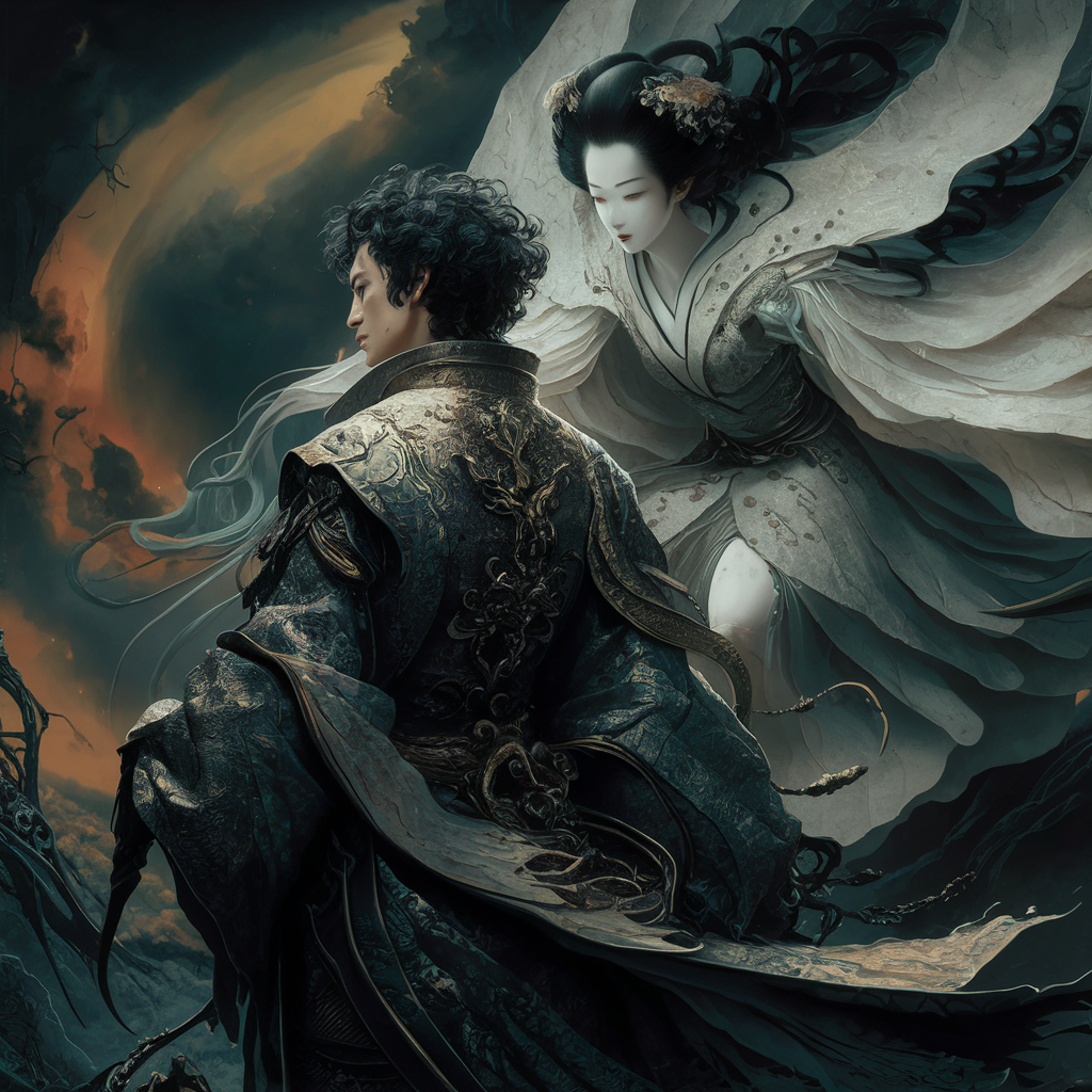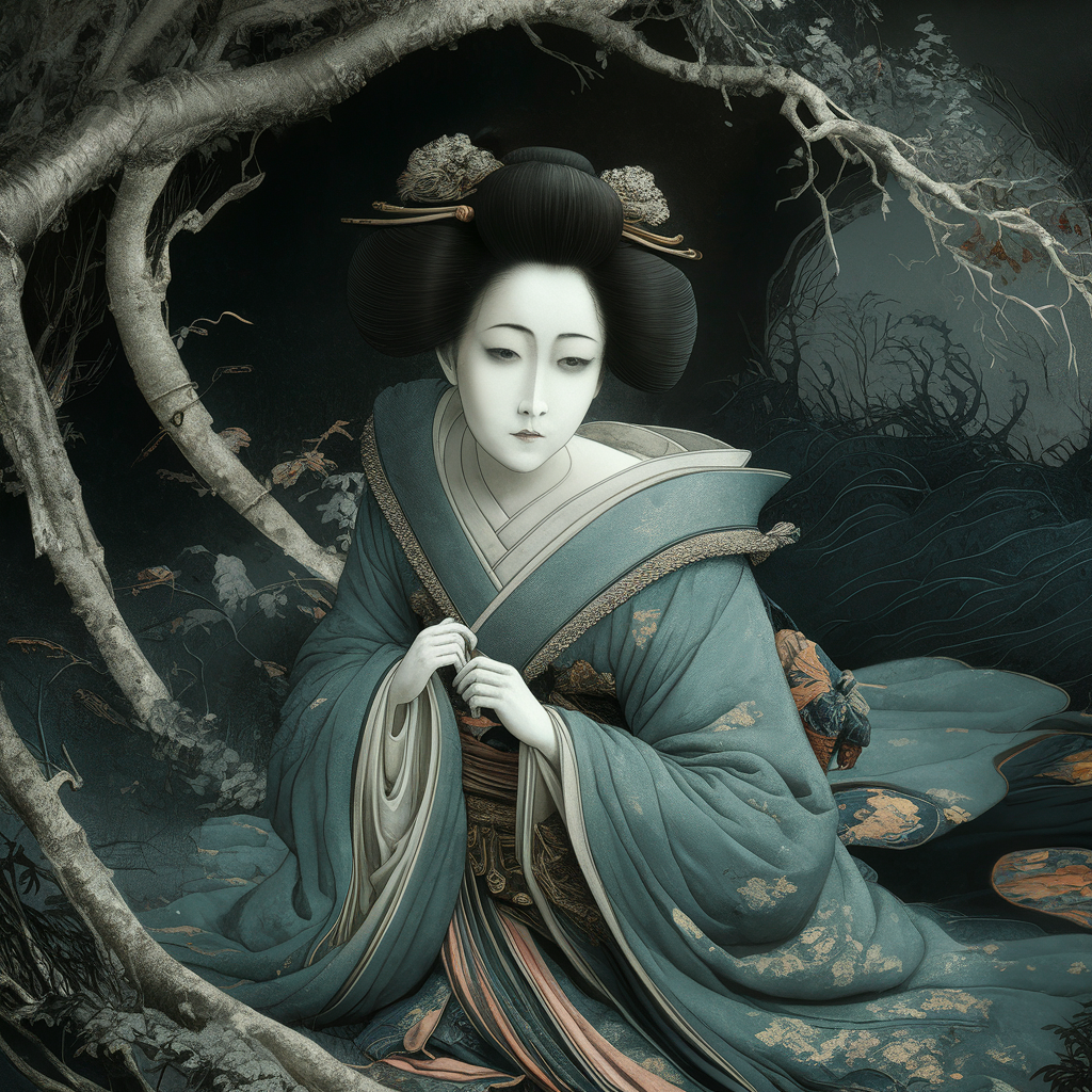 Автор: Allex Devпопробовал смешать в нейросети стили дарк-фентези и Укиё-Э