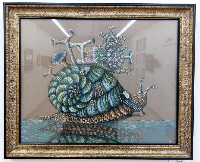 Это персональная выставка художницы Елены Сурковой. Она окончила Новоалтайское художественное училище, работала в Алтайском театре кукол, с 2014 года работает в краевом Дворце творчества детей и молодёжи, руководит творческим объединением "ИзоДеГраф".