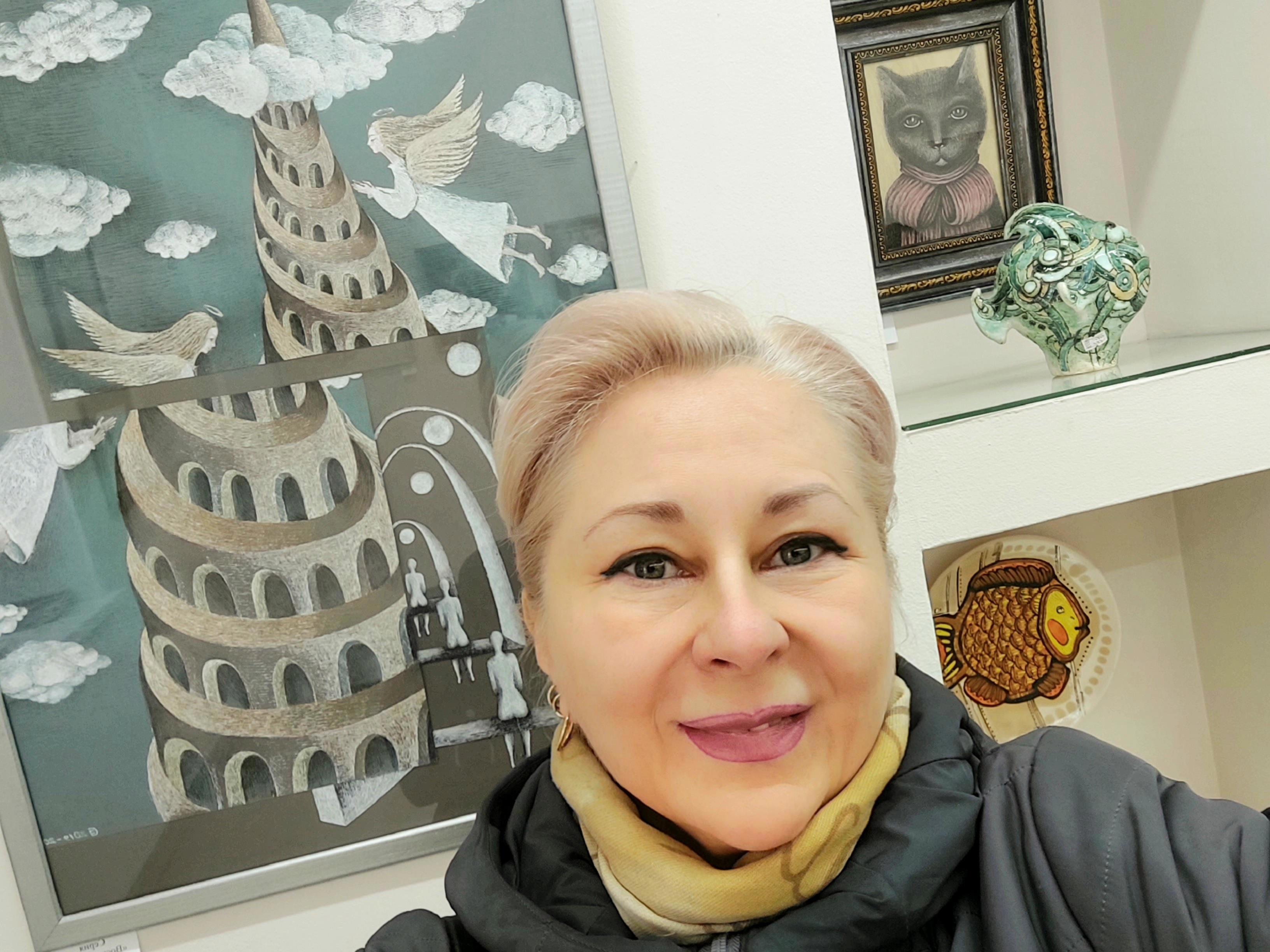 Название выставки "Между прошлым и будущим" показывает работы разных периодов жизни художницы. Желаю всем вам, дорогие мои друзья и коллеги, лёгкой и удачной рабочей недели!