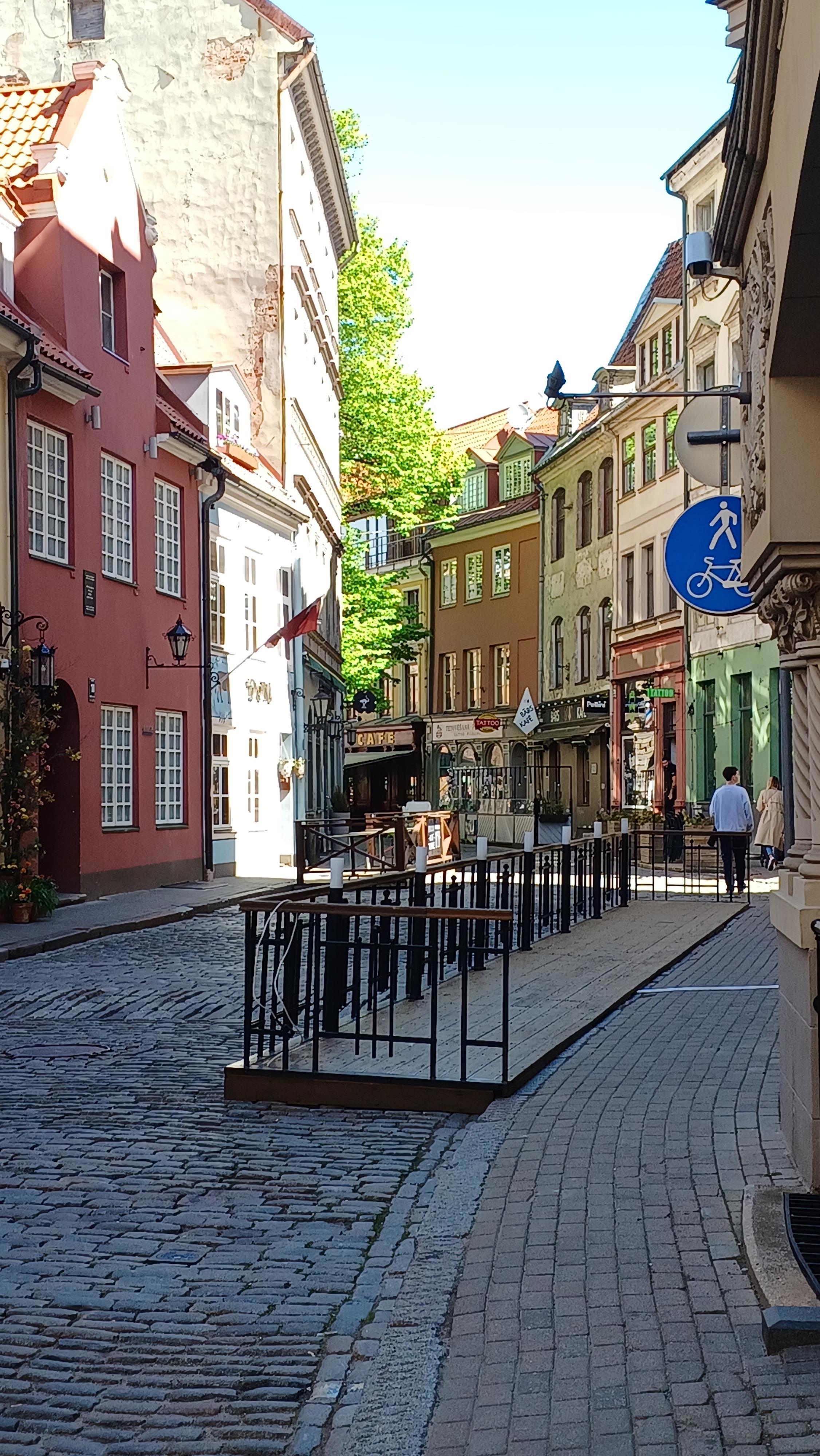 На улице Яуниела. Начало 1970-х годов. Съемка фильма “Семнадцать мгновений весны”. Режиссер Татьяна Лиознова беседует с исполнителем роли профессора Плейшнера актером Евгением Евстигнеевым Та же улица через 50 + лет