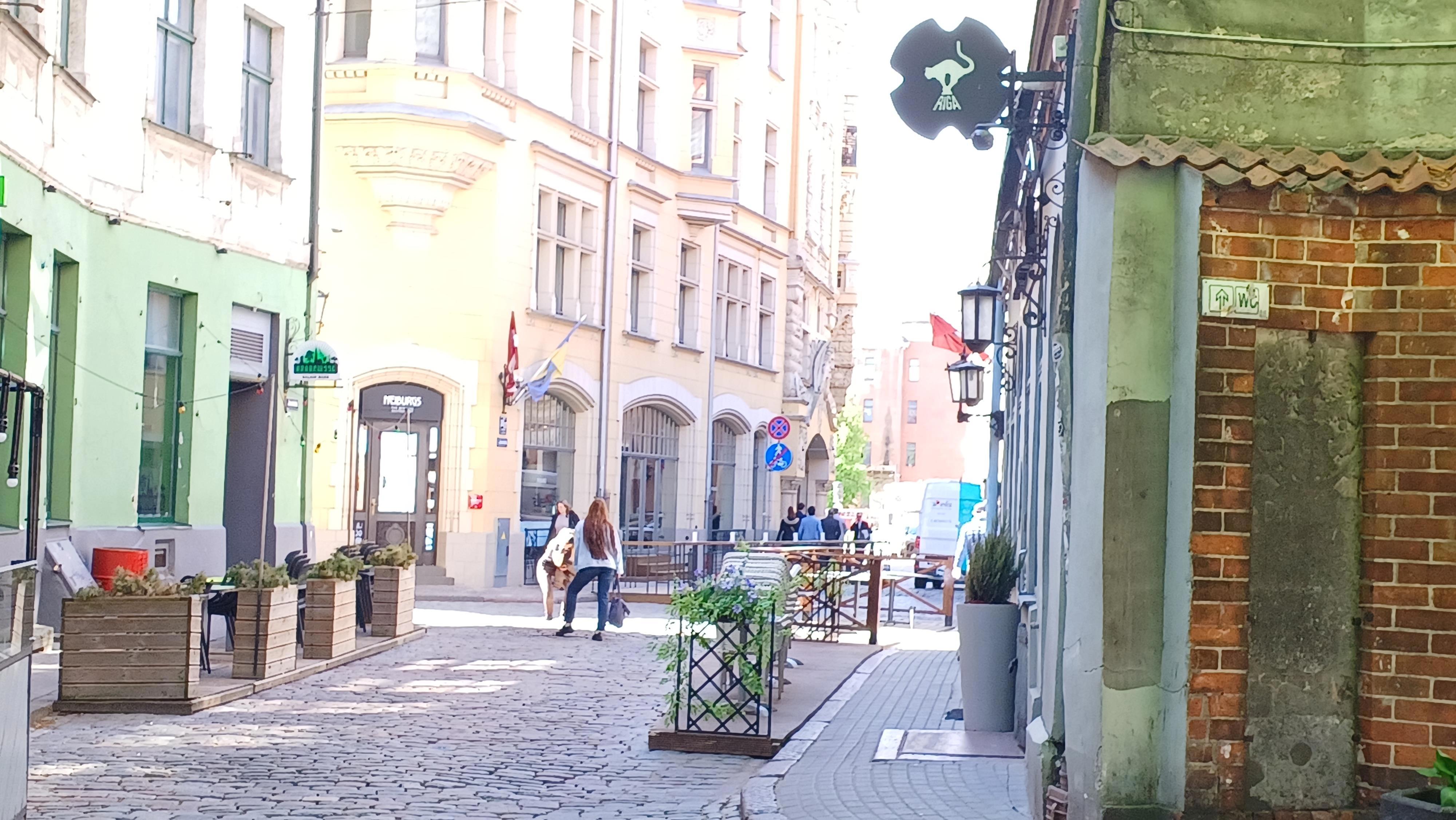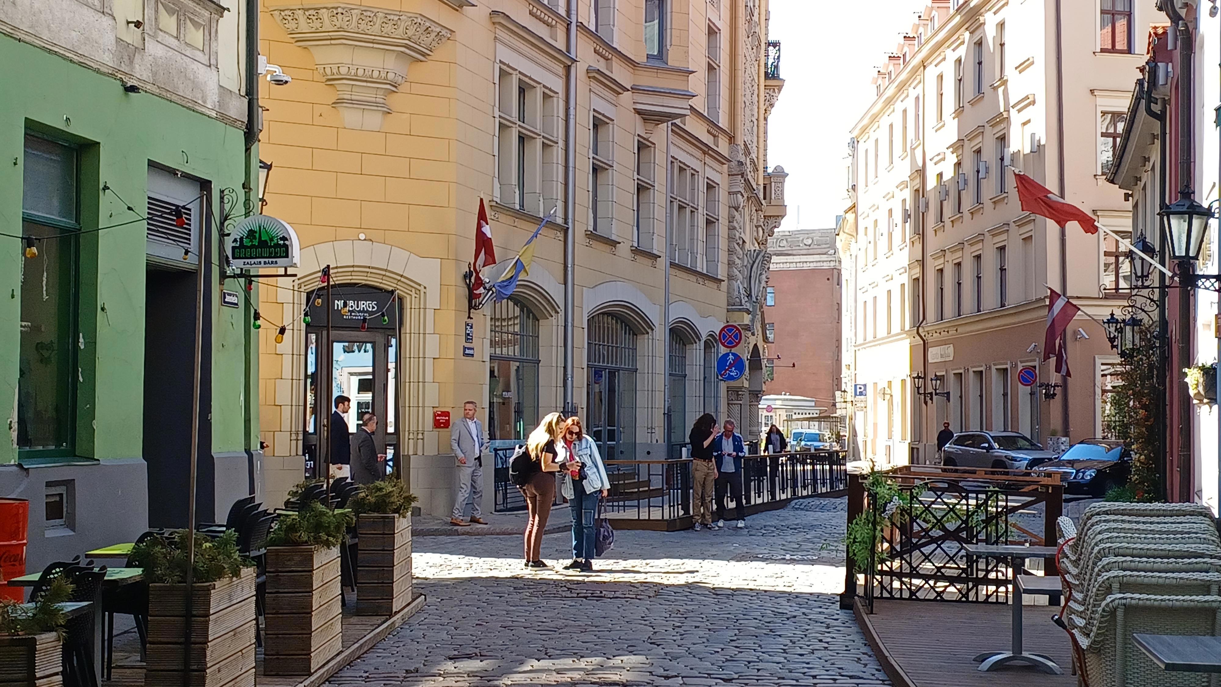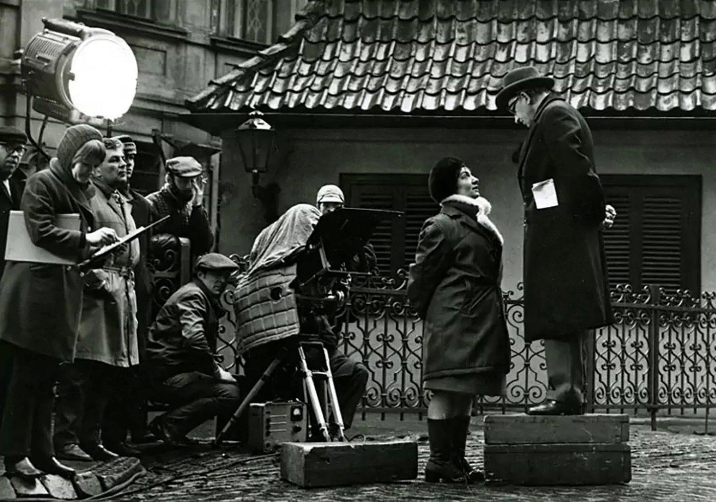 Автор: welder59На улице Яуниела. Начало 1970-х годов. Съемка фильма “Семнадцать мгновений весны”. Режиссер Татьяна Лиознова беседует с исполнителем роли профессора Плейшнера актером Евгением Евстигнеевым Та же улица через 50 + лет