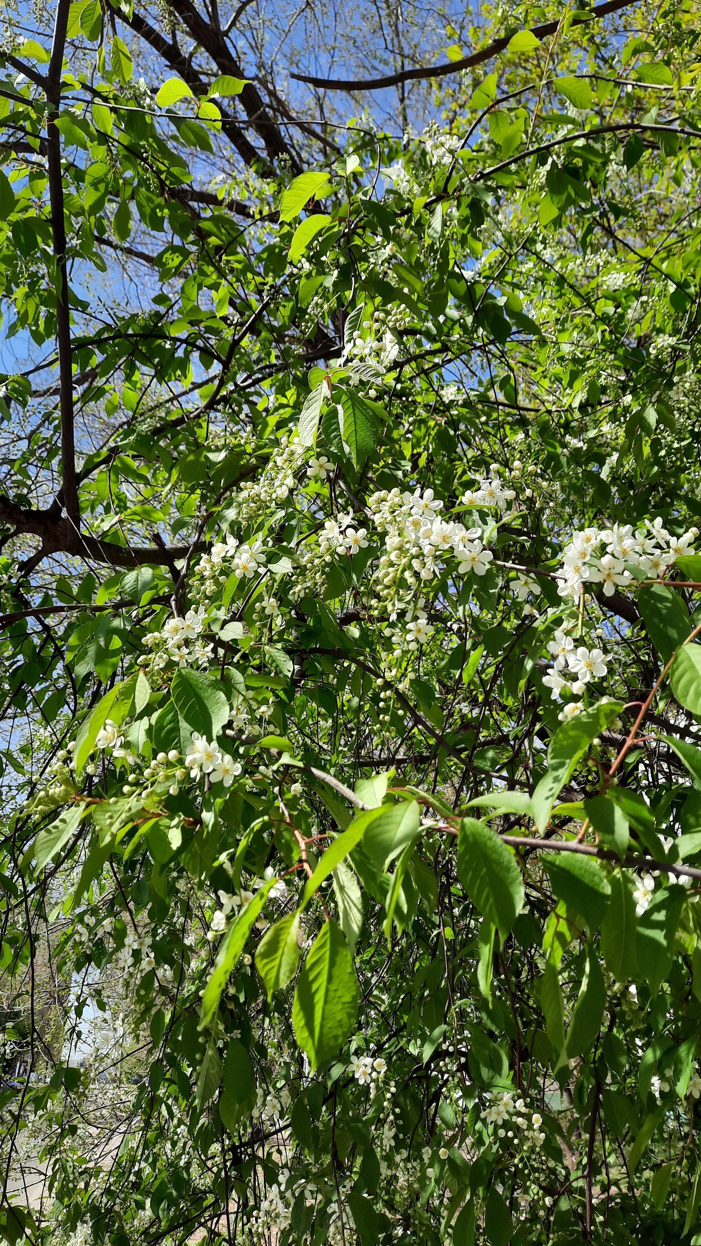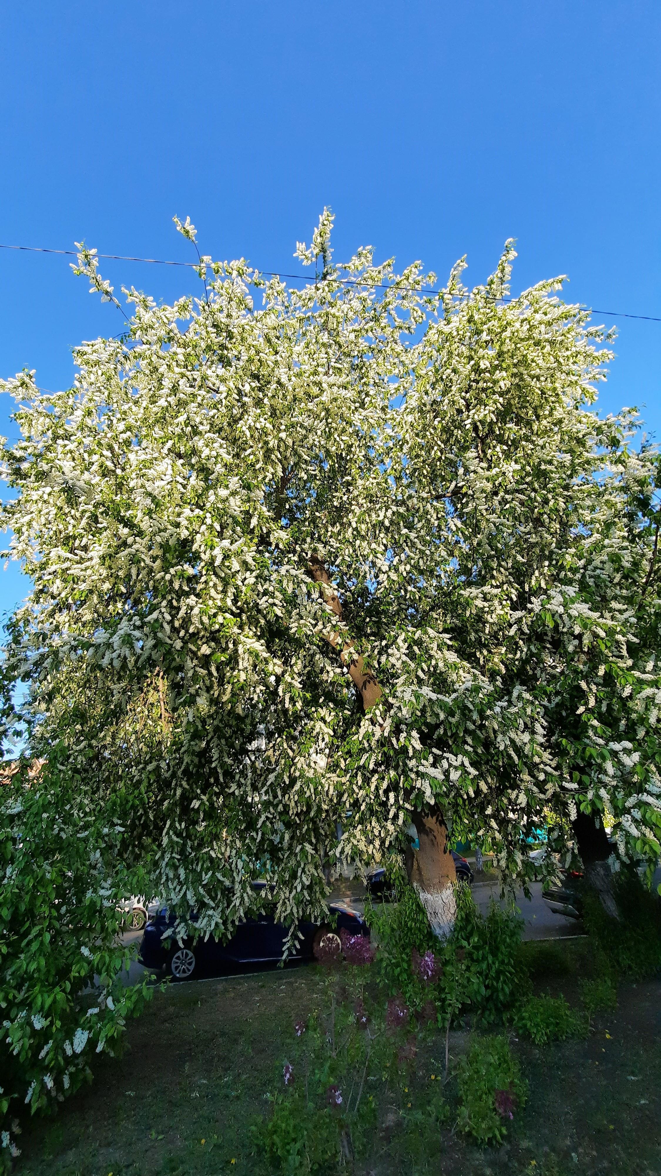 15.05.2024 Начался "лепестковый снегопад". Черёмуха на пике цветения.