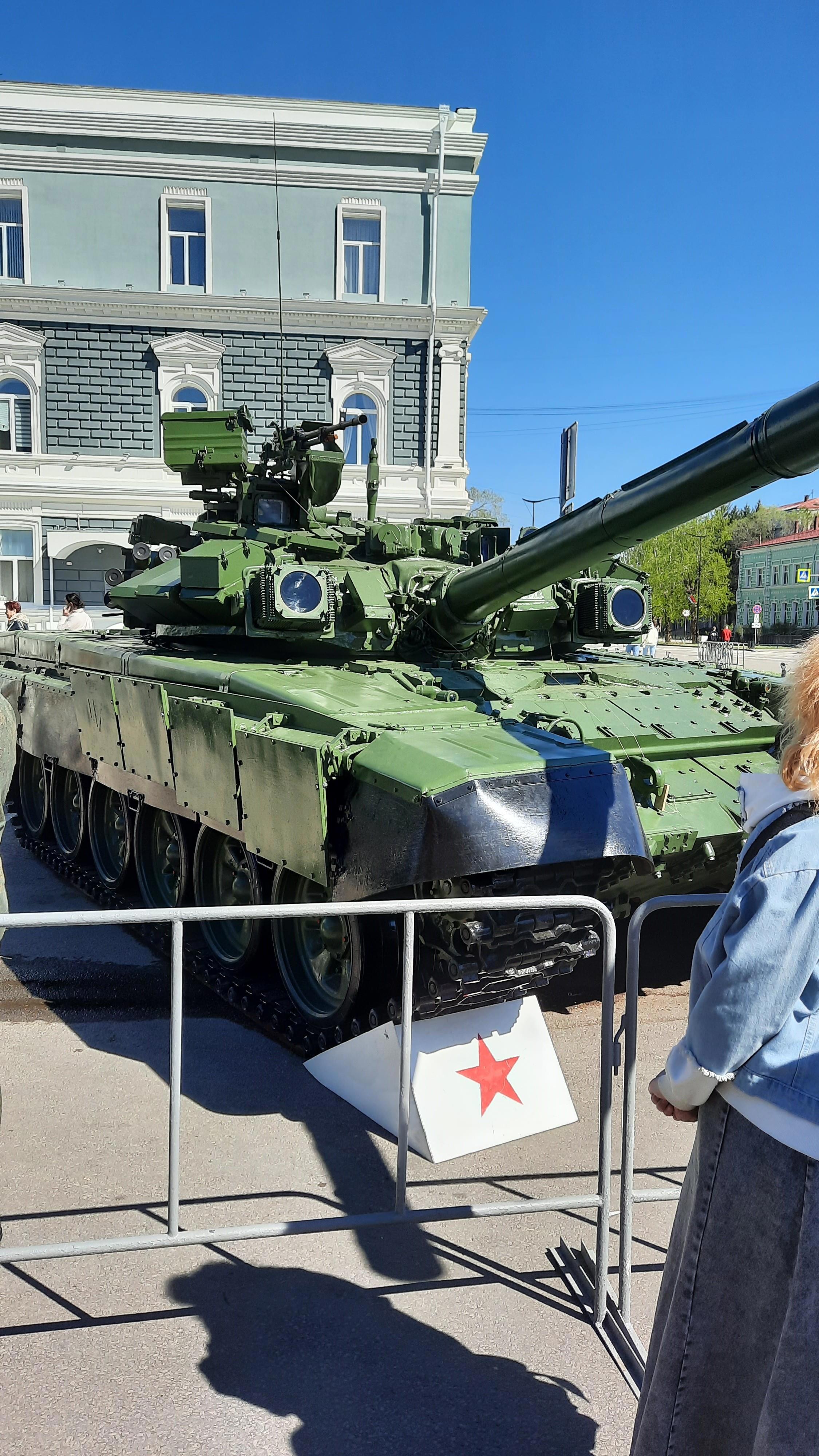Т-72Б3 Видел как в город везли Т-34-85... но до площади Ленина он не доехал. Народ говорил (чисто слухи) что его и еще технику перегнали в Китай на демонстрацию.