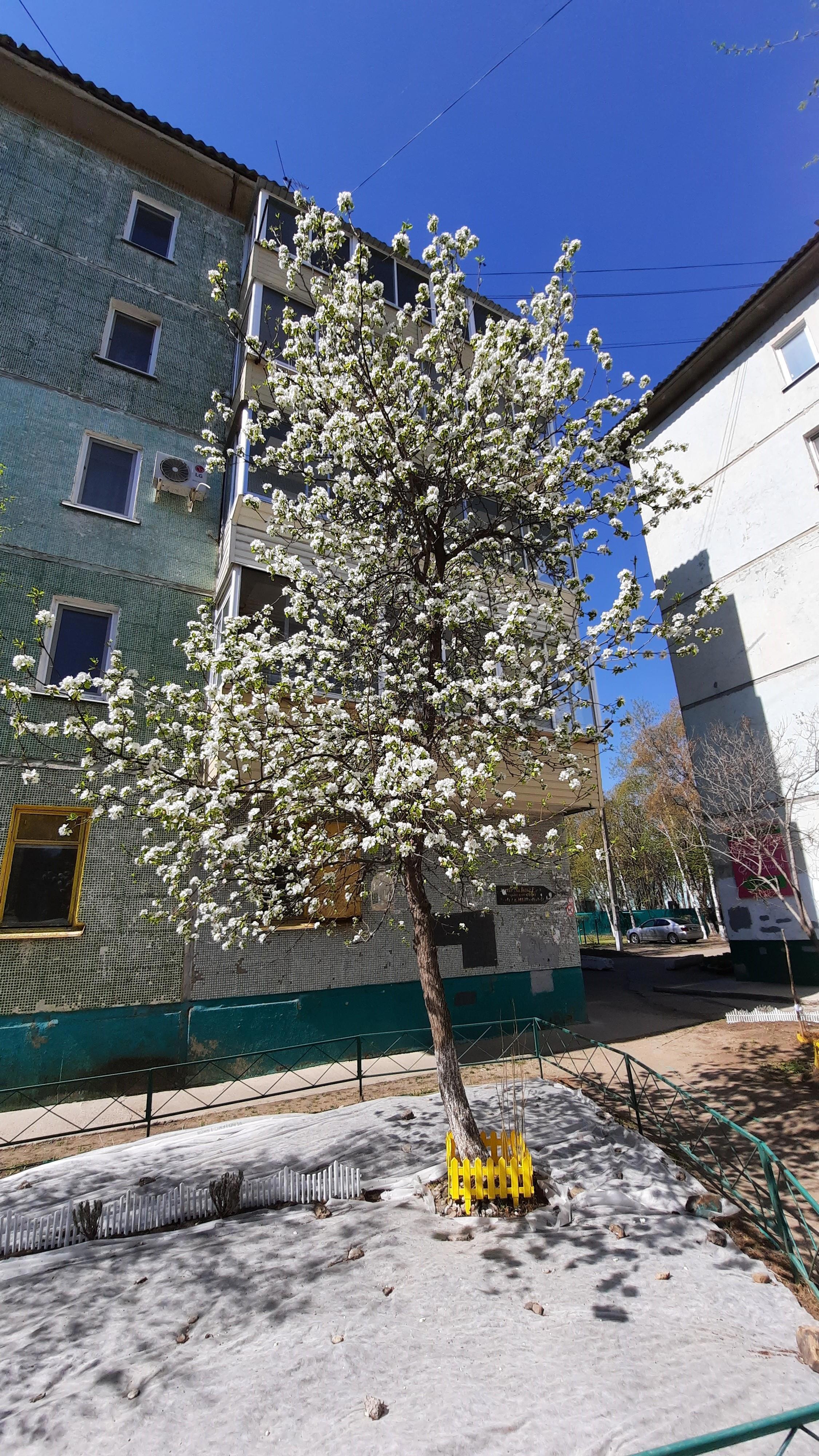 А это наша полудикая груша. Цветет красиво... но пахнет не ахти...