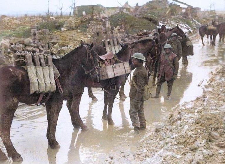 9. Из-за мощной артиллерии эвакуацию раненых из окопов и доставку грузов пришлось вести как триста лет назад - на солдатских плечах. Любая телега засекалась артнаблюдателями и разносилась вдрызг. Все тащи на горбу.