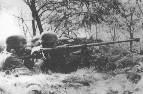 Бойцы с этим ружьем в атаке. Это, знаете ли дорогого стоит - когда пехота может тащить с собой средства усиления, а не бежать с голым пузом.