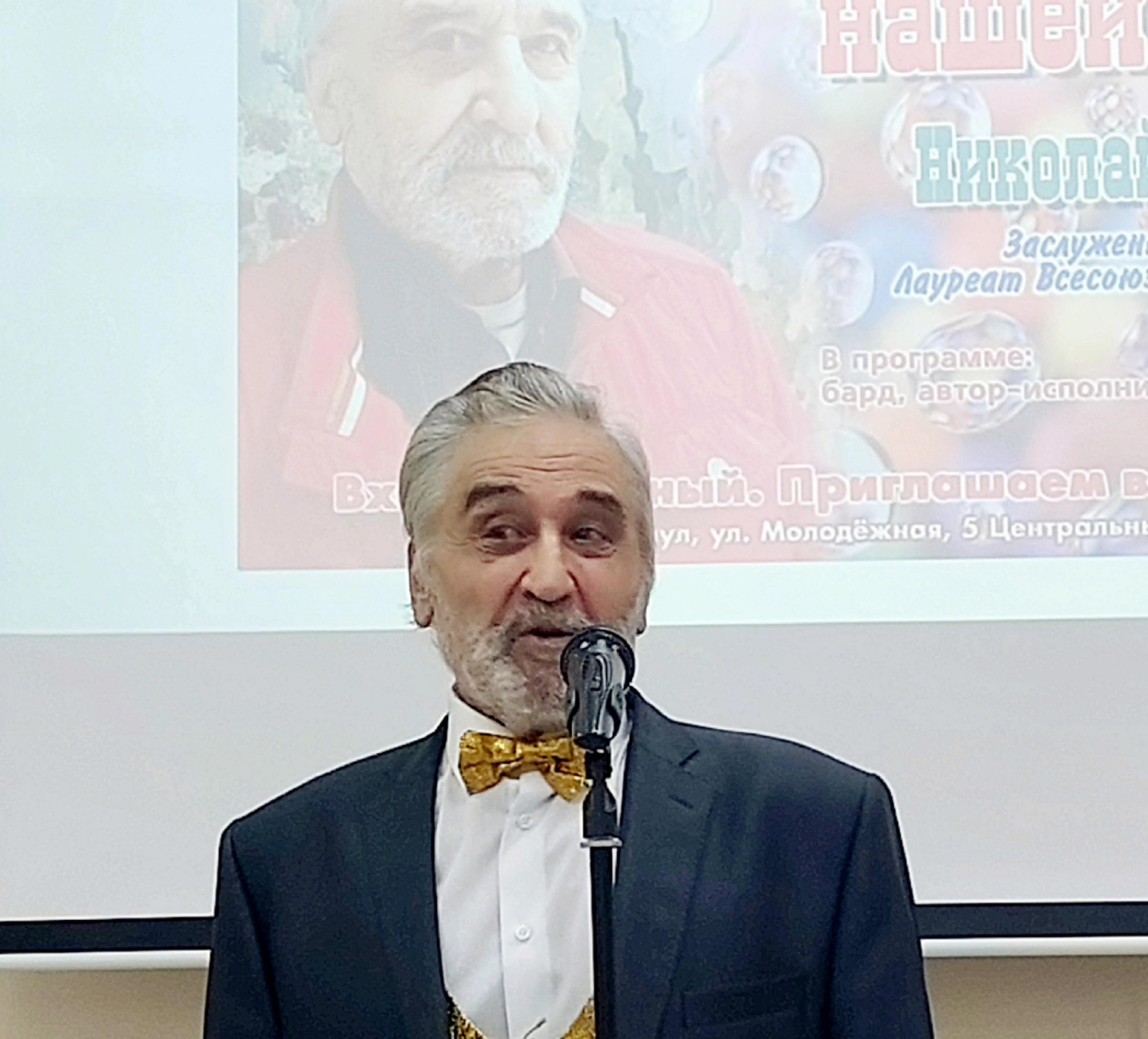 Николай Алексеевич Забруцких – Заслуженный артист РСФСР, лауреат Всесоюзного фестиваля искусств в Москве. Впервые у нас на площадке литературного клуба выступал столь блистательный артист разговорного жанра, а ведь именно его бархатным баритоном говорят со слушателями многие книги писателей Алтая, в том числе и мои повести и рассказы, чем я очень и очень горжусь!
