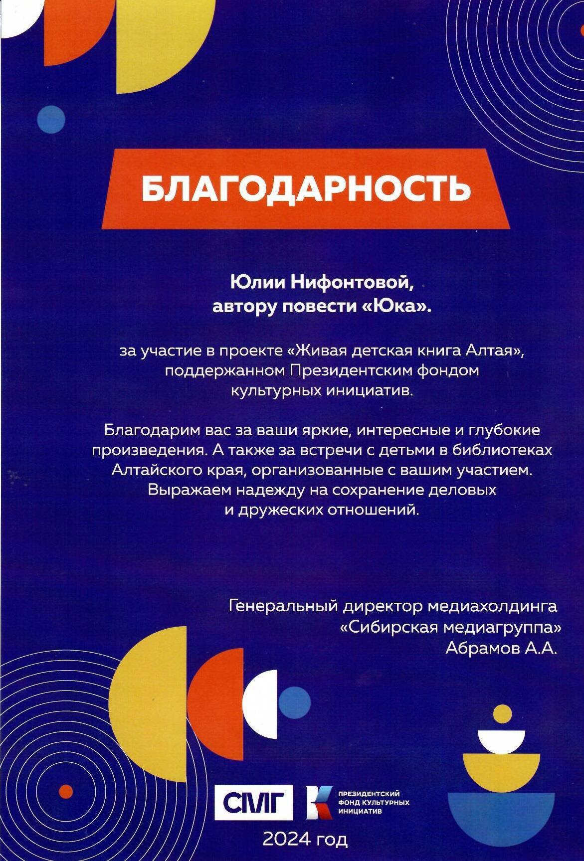 ...а наш обаятельный руководитель проекта - Юлия Абрамкина вручила нам Благодарности от генерального директора медиахолдинга "Сибирская медиагруппа" Андрея Александровича Абрамова за активное участие в проекте "Живая детская книга Алтая"! 😊💞