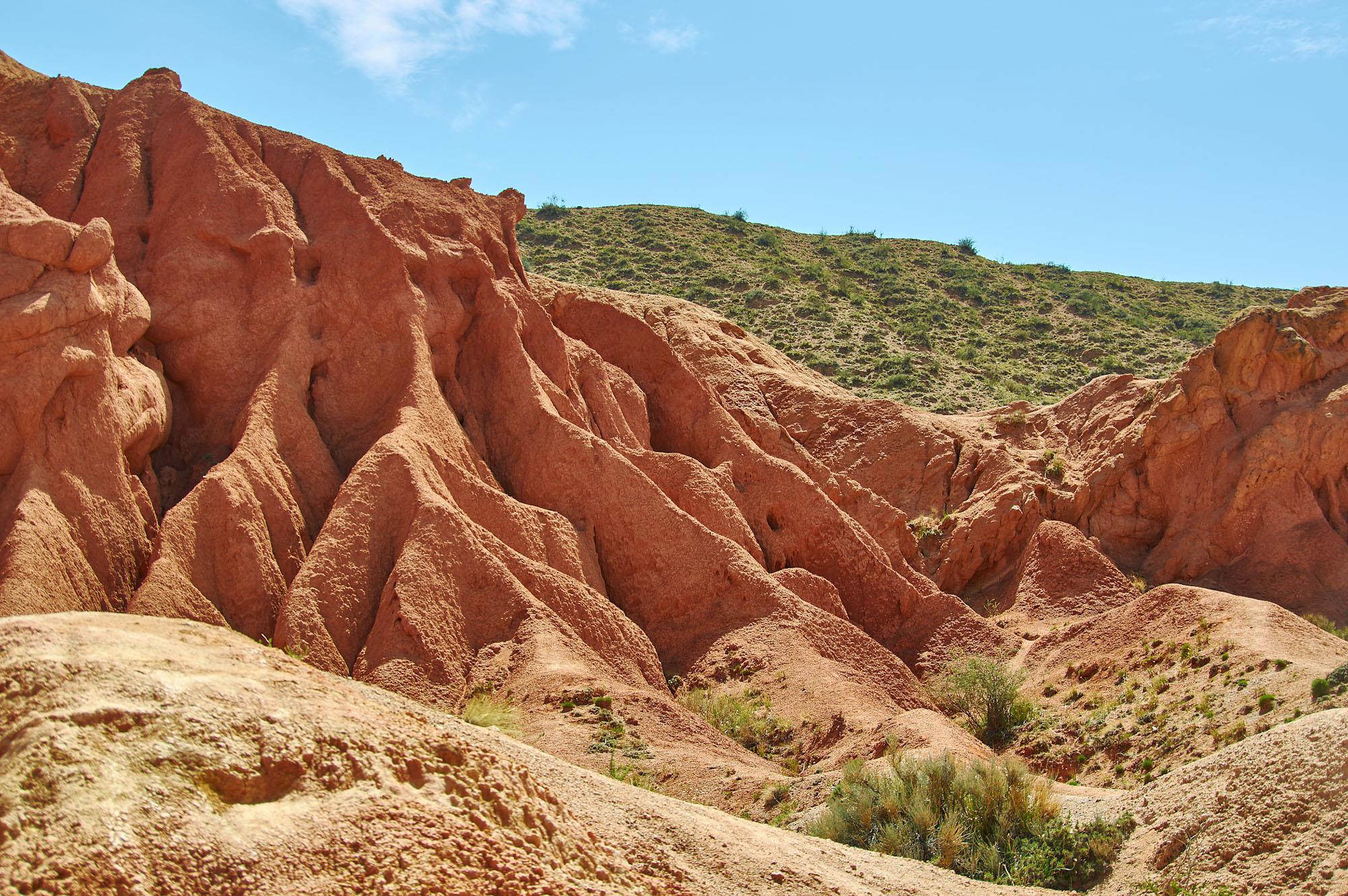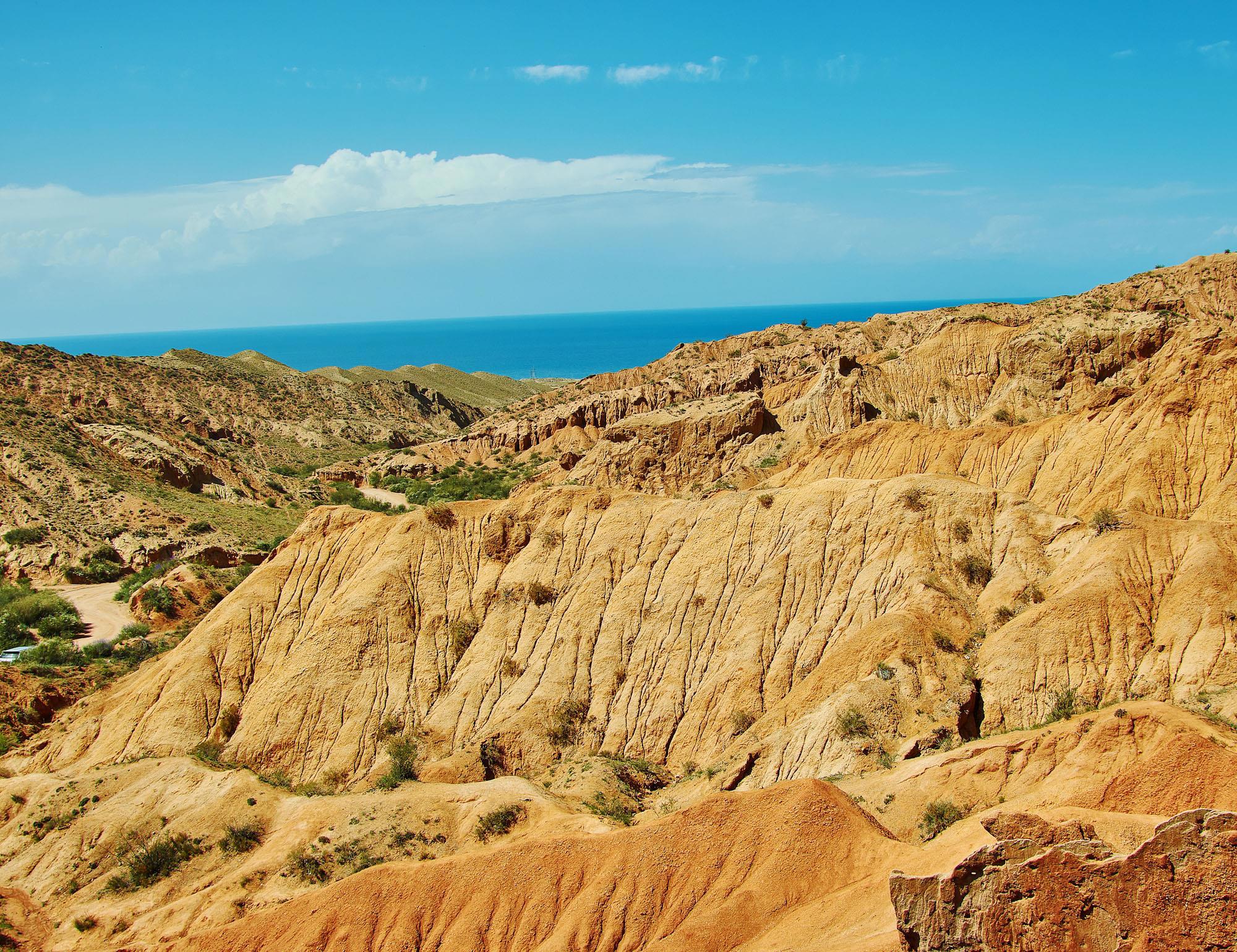 Я об этом чудесном месте писал в блогах, посвященных прошлому путешествию. Вот и сейчас над Иссык-Кулем выглянуло жаркое южное солнце, и мы стремглав прыгнули в машину. Вот огромный плюс машины в прокате, а не передвижение попутками и турами. Ты свободен в любой момент и видишь намного больше. Самостоятельные путешествия намного эффективней. От отеля ехать до каньона минут пятнадцать.