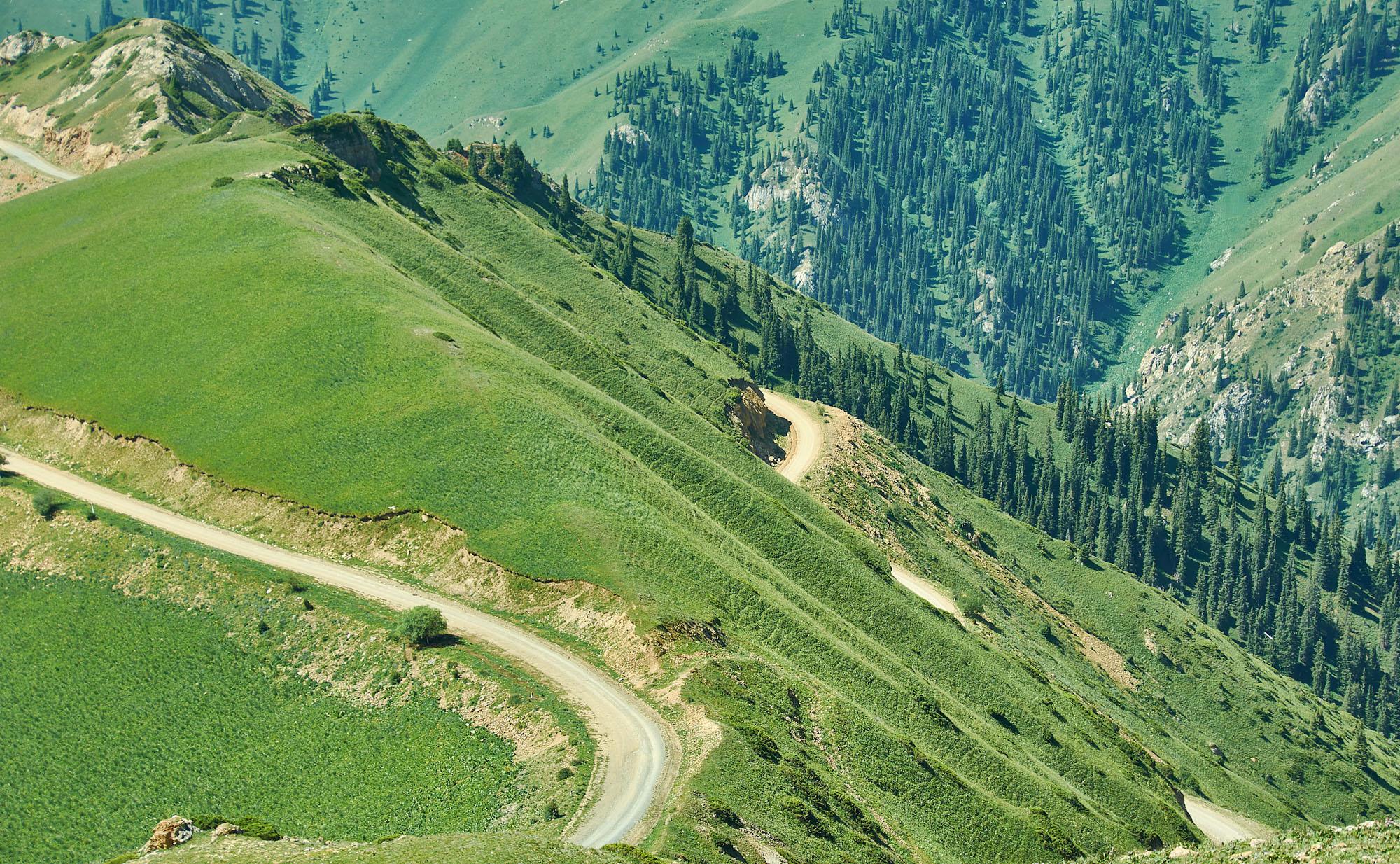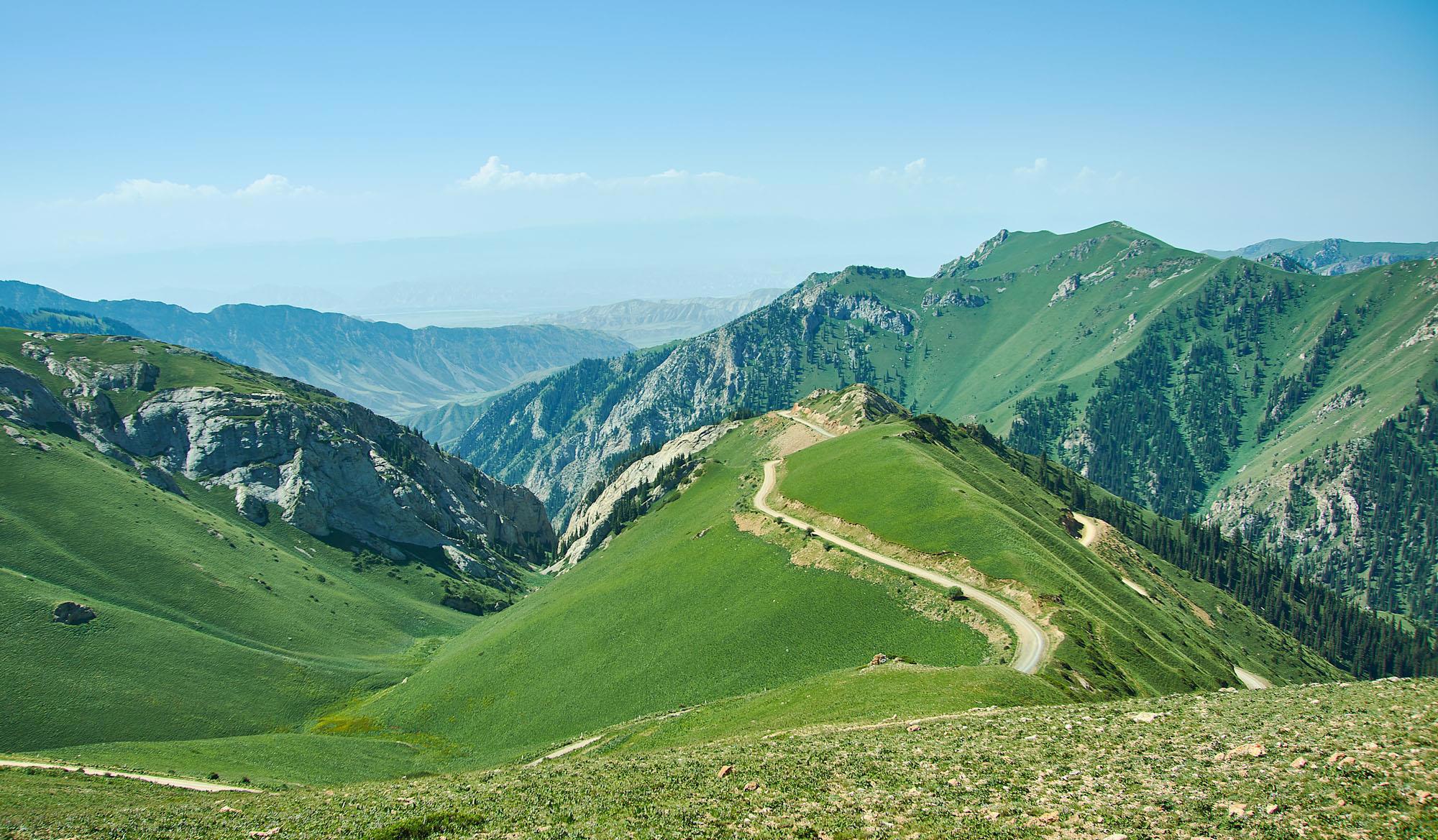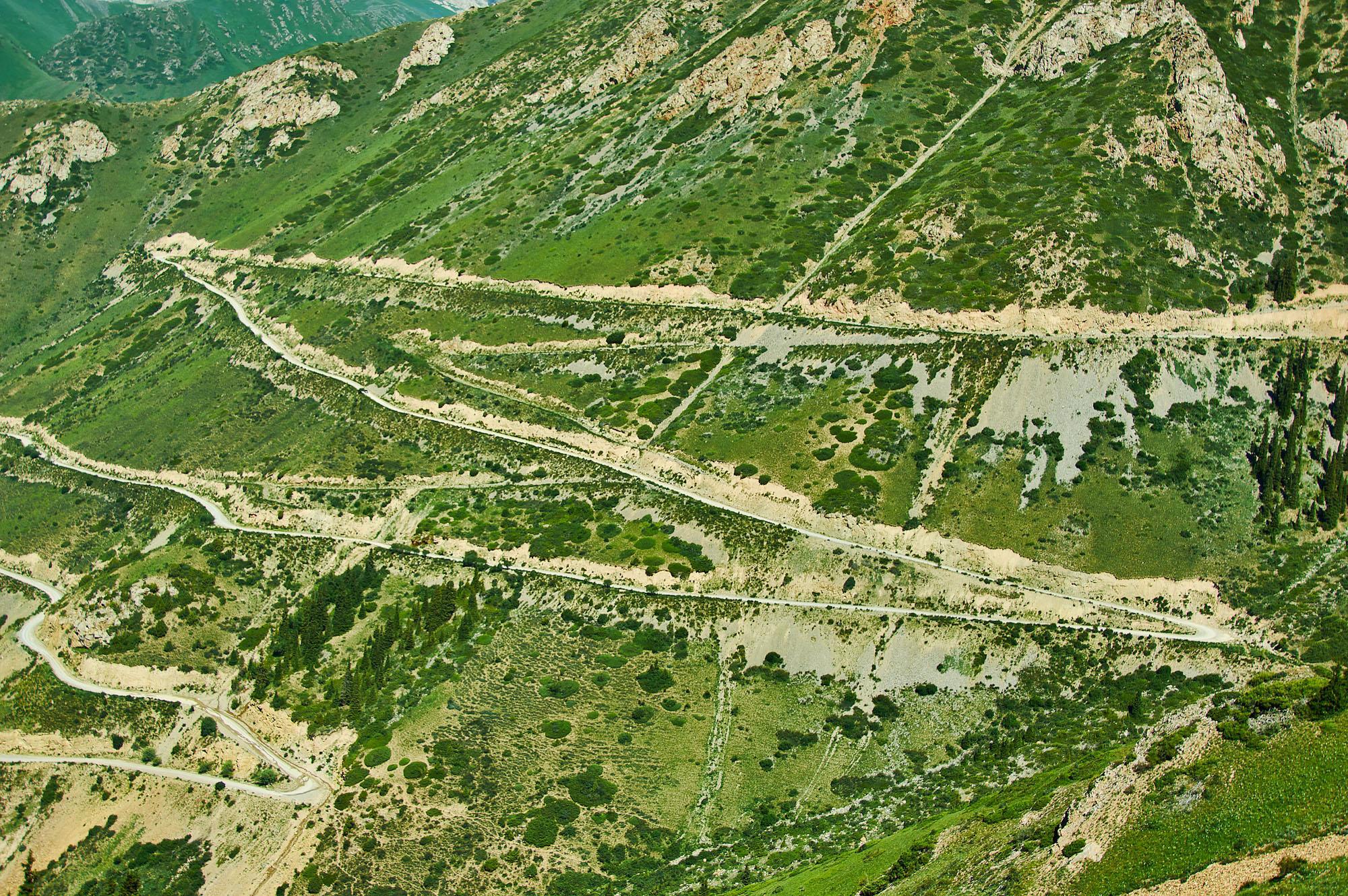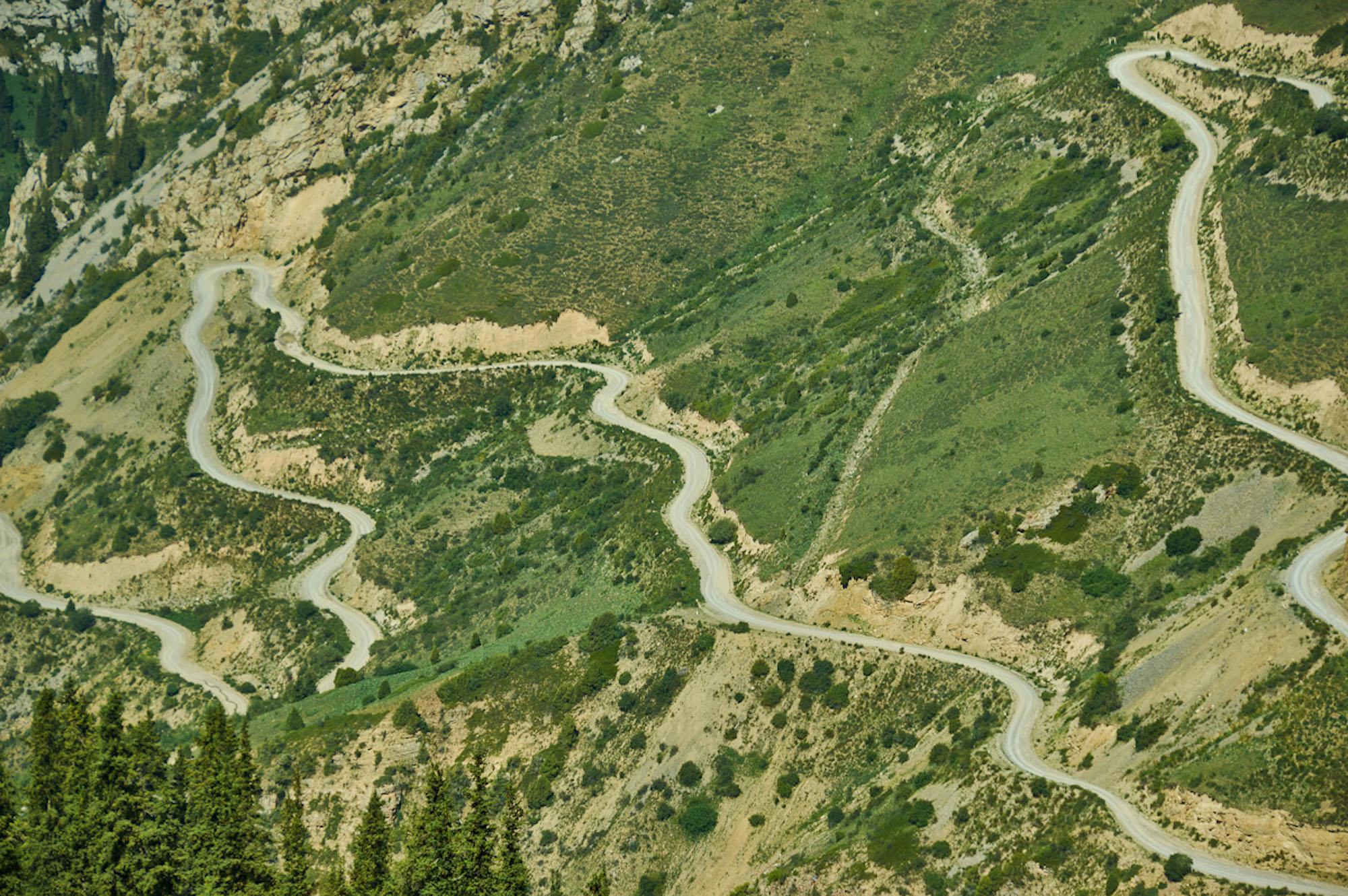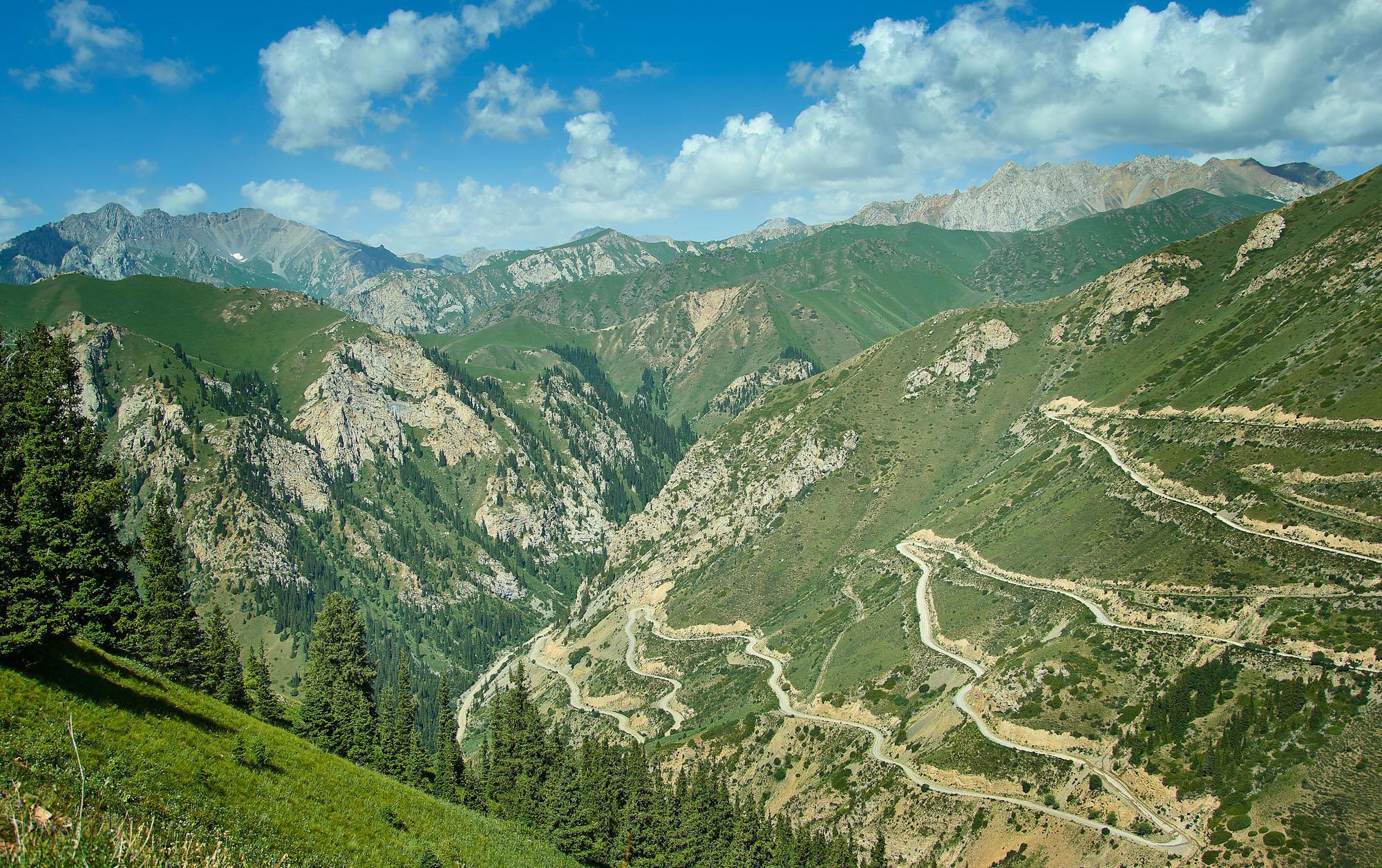 Останавливаемся и любуемся чарующим видом спуска. Говорят, что это один из самых красивых перевалов Киргизии.