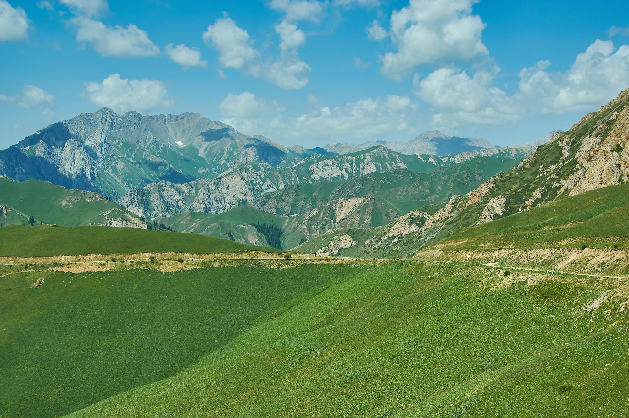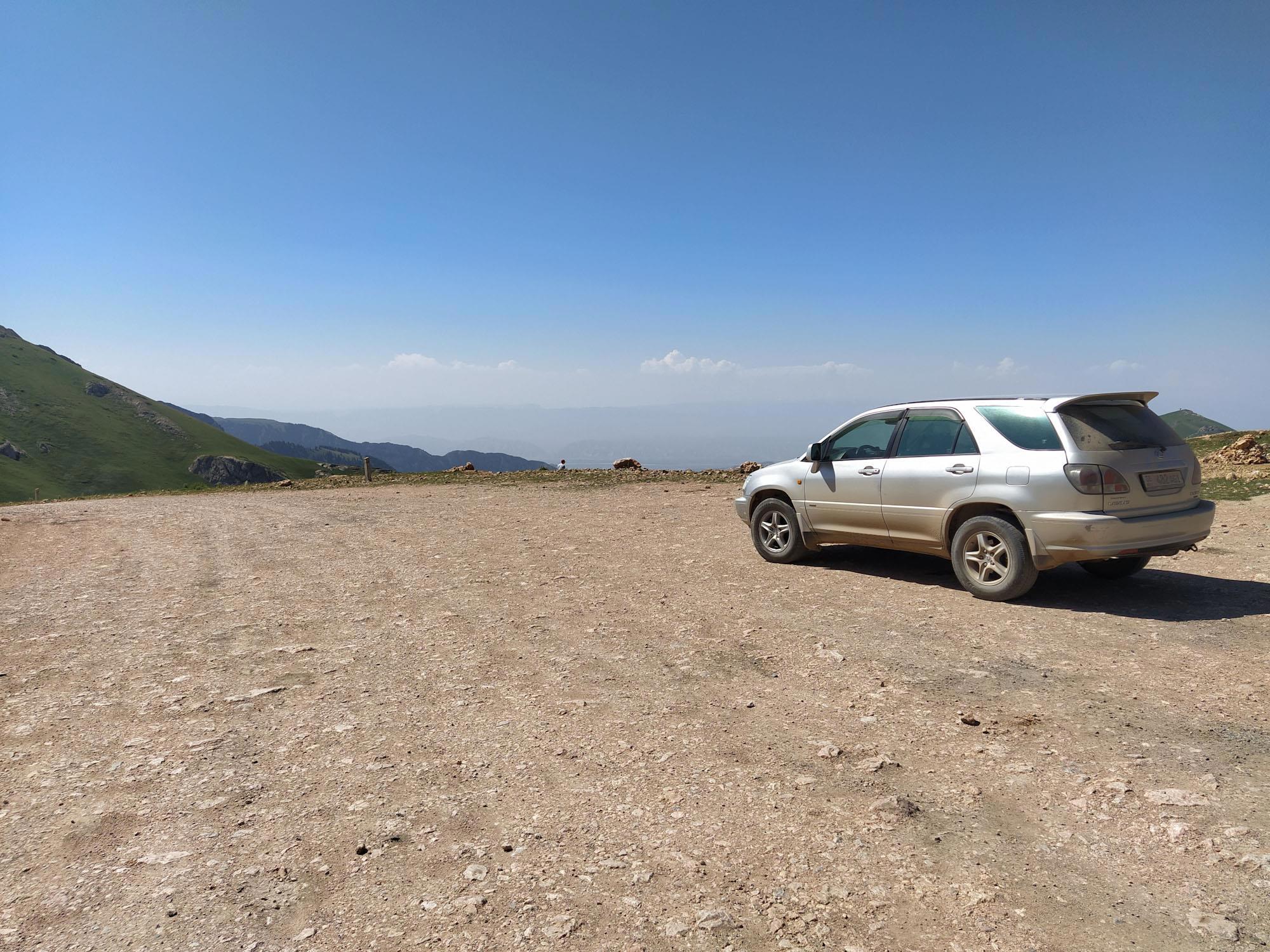 Почти час дорога идет вдоль озера, затем резко уходит в горы на перевал Молдо-Ашуу. Высота перевала 3201 метров. Третий трехтысячник у нас на пути. Над нами бескрайнее небо, поодаль вершины с остатками льда. Впереди плато.