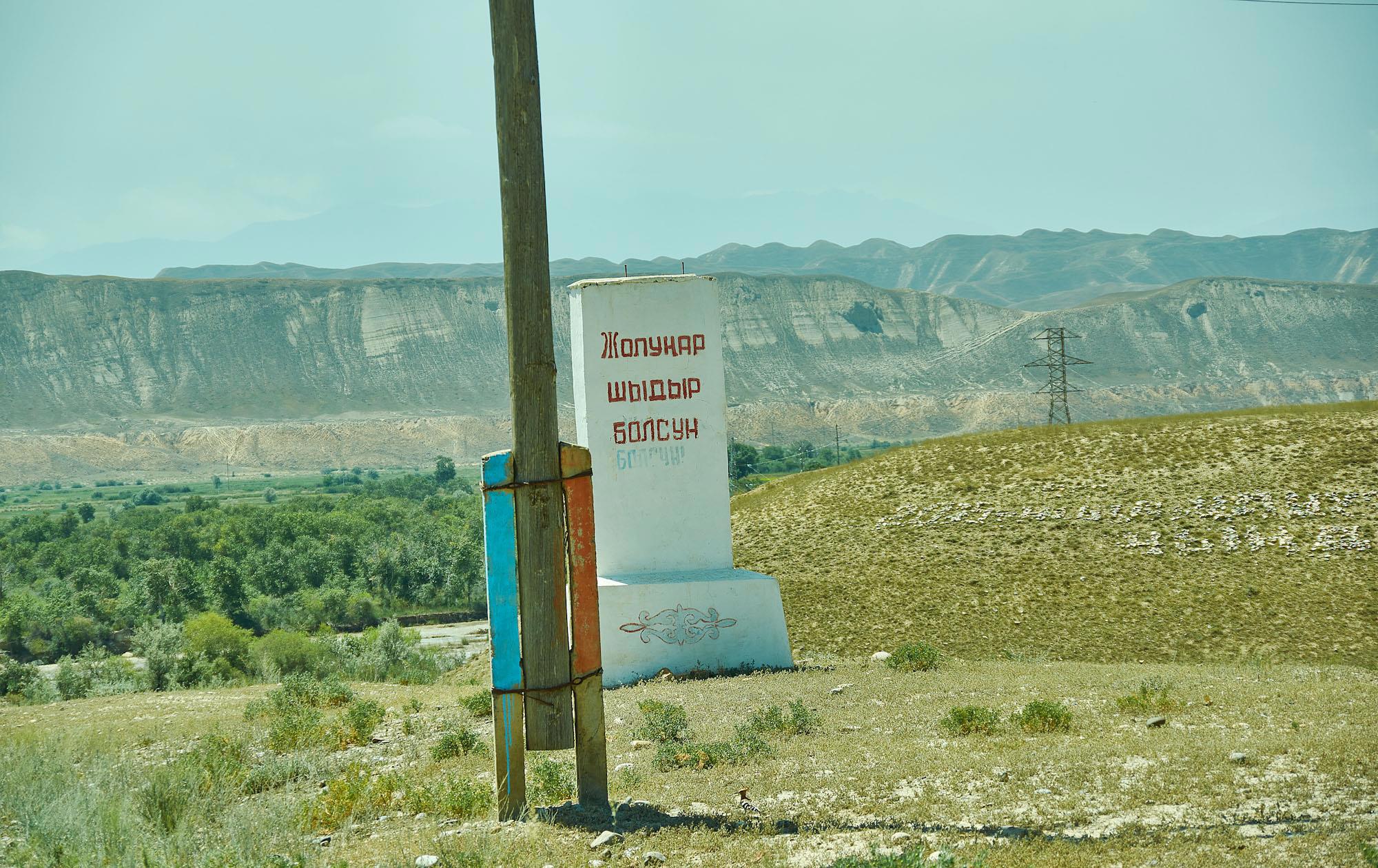 . Пока еще есть деревья с тенью, останавливаемся перекусить. Высоченные трёхтысячные отроги Тянь-Шаня остаются позади, а затем два из них охватывают нас с двух сторон, сопровождая в пути.