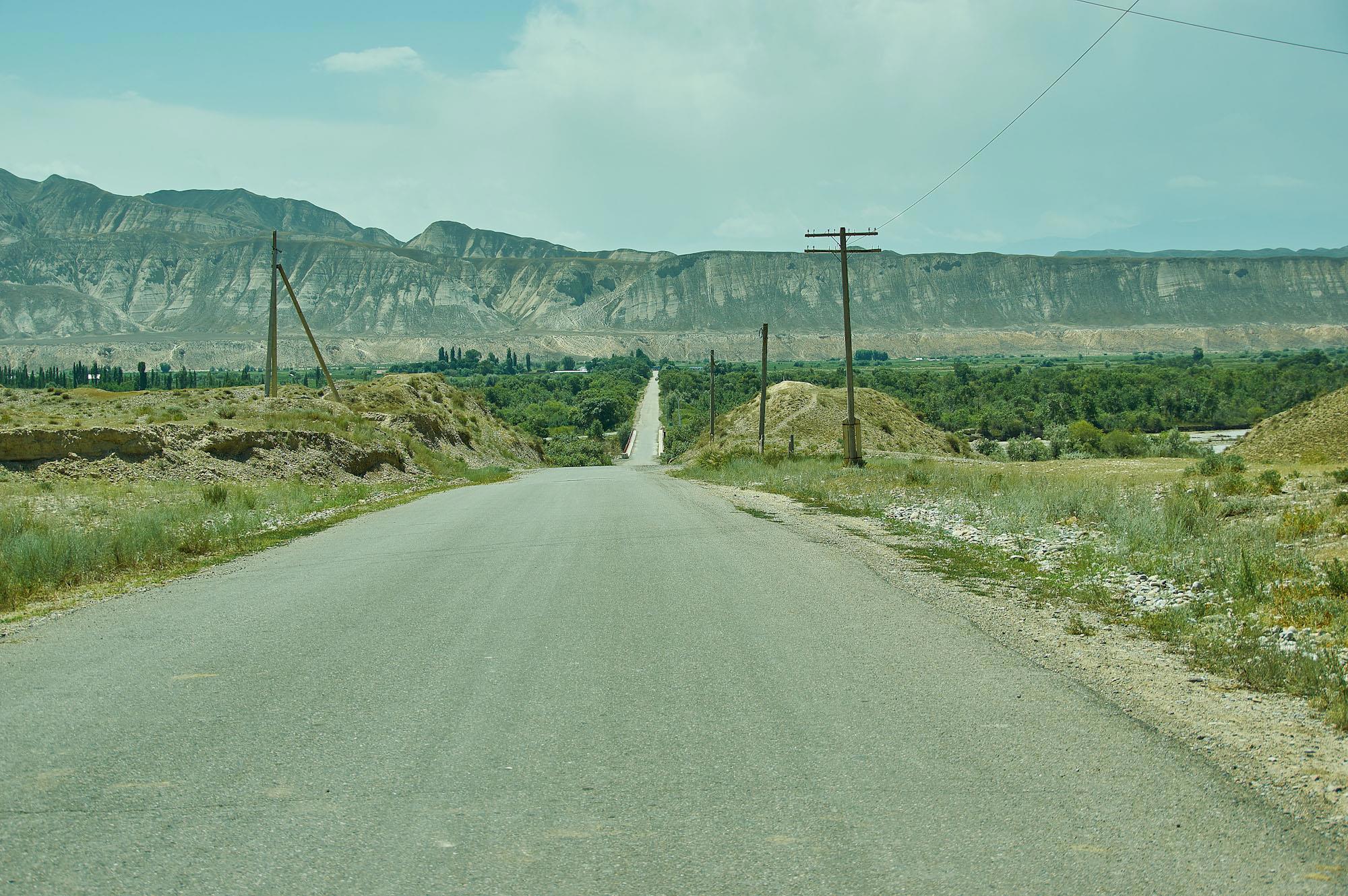 Дальше хреновенький асфальт идет лишь к городу Нарын, что расположен на высоте 2000 метров. В нем же до сих пор существует самый высокогорный троллейбус в мире. А нам надо сегодня направо, дальше в горы по грейдеру между хребтами Тянь Шаня.