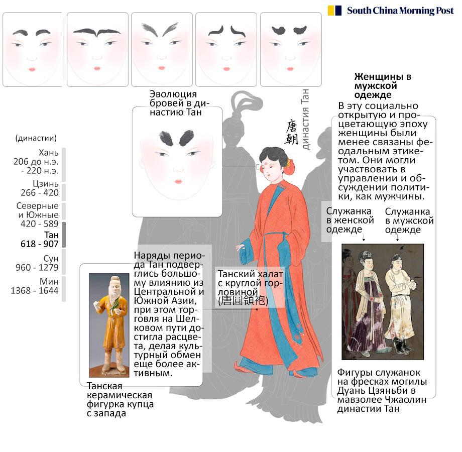 Наряды периода Тан подверглись большому влиянию из Центральной и Южной Азии, при этом торговля на Шелковом пути достигла расцвета, делая культурный обмен еще более активным.