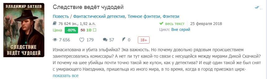 Так что вы можете за 10 рублей получить +50 репутации, а также провести часок за чтением неплохого фэнтезийного детективчика с долей чёрного юмора и капелькой похабности.