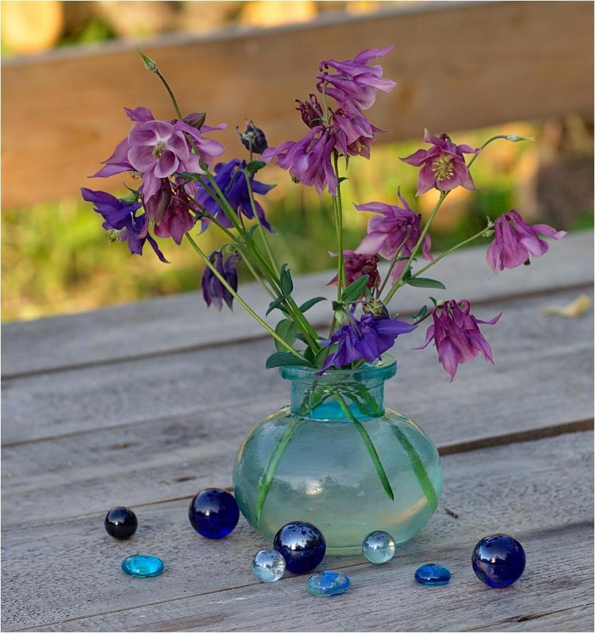 Автор: Ольга ЛевоновичОчень люблю эти фантастические, космические цветы. У него много названий - аквилегия, водосбор, орлик. Известно также под народными названиями голубки, сапожки, колокол. Медоносные пчёлы берут пыльцу с тех видов или садовых сортов водосбора, у цветков которых короткий шпорец. Цветки с длинным шпорцем выделяют больше нектара, но пчёлам удаётся добыть его только после того, как основание шпорца будет прокусано шмелями.