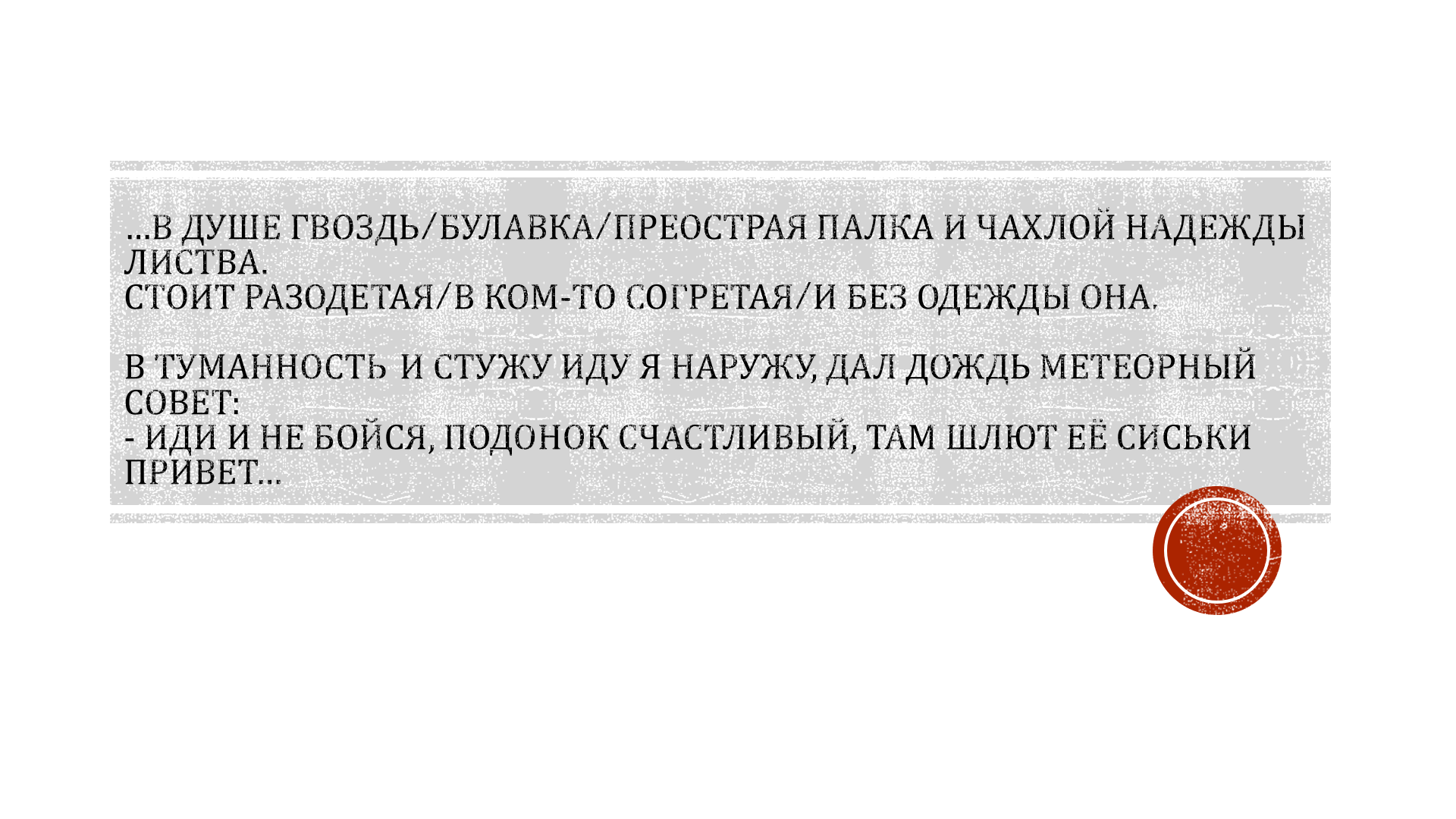 После женитьбы стихи потеряли перчинку. Критики с надеждой твердили, что Синис лишь подаёт блюдо холодным. Я же подозревал, что исчез источник вдохновения. Творчество начинается с боли. А у него жена-красотка и личный астероид. Ну какие тут могут быть страдания?!?