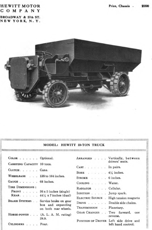 В том же 1914 году за 5500 можно было купить 6-ти тонный грузовик Тимкен с 50 сильным бензиновым двигателем. 5-ти тонный Гарфорд, хорошо зарекомендовавший себя как шасси для бронеавтомобиля, в виде «голого» шасси стоил 4500 долларов.