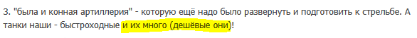 По впопудаунской теории танки обойдут с фланга и будут кошмарить тылы, елинственными, кого они встретят будут кавалерийские части, которые, даже при наличии пулеметных рот и артиллерийских дивизионов, не успеют расчехлить пушки и пулеметы, потому что танки быстры, многочисленны, внезапны как испанская инквизиция. Все по Тухачевскому. Надо сказать, что мечты Тухачевского (если не принимать свидетельства, что он жаждал за 1928 год наклепать 100 000 танков во внимание) с его 2750 танками в пятилетку были, пожалуй, намного реалистичнее впопуданческой идеи наклепать сотни танков к 1914 году.