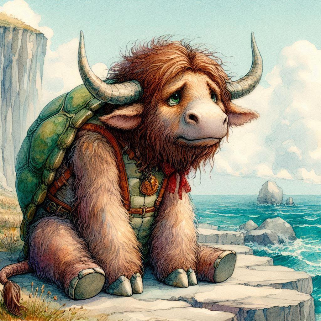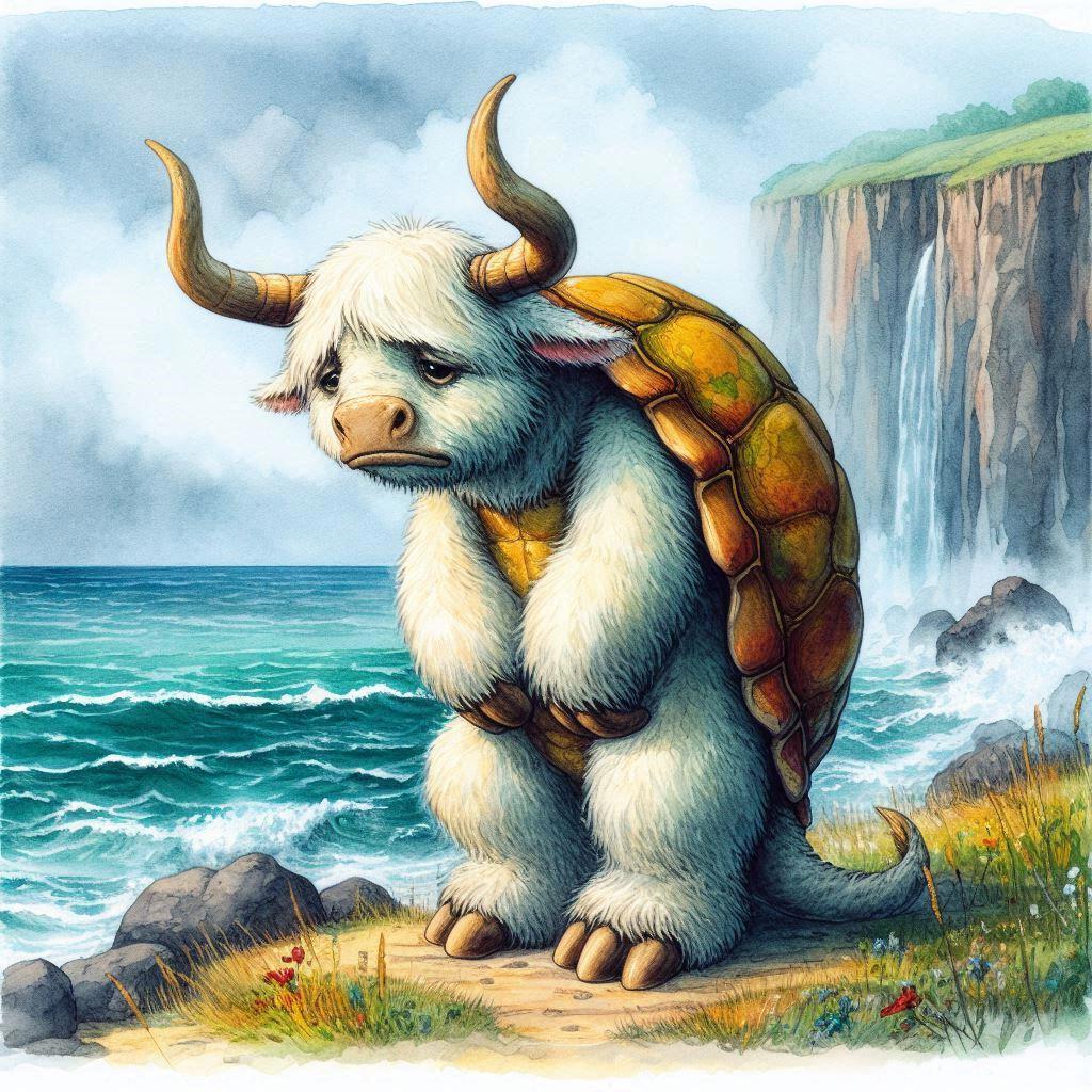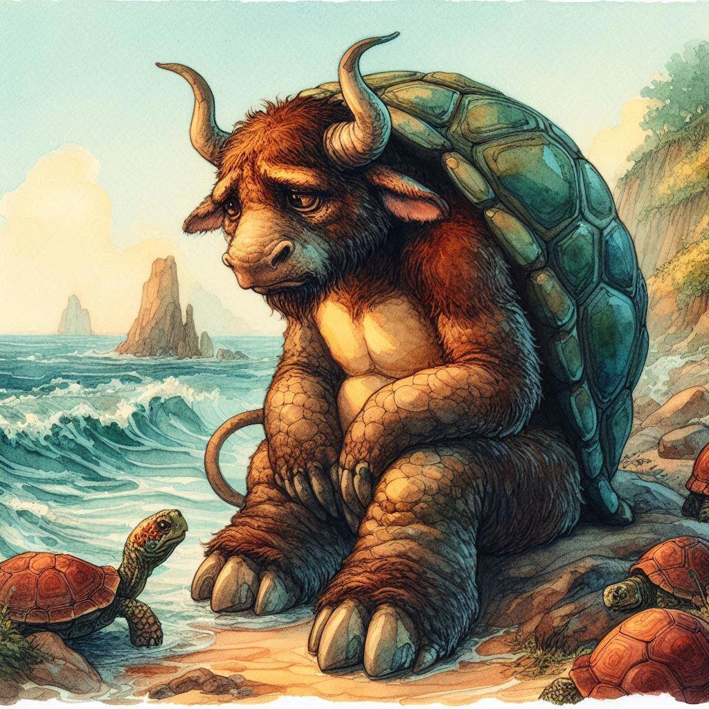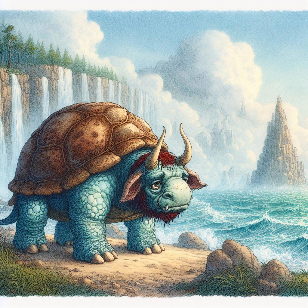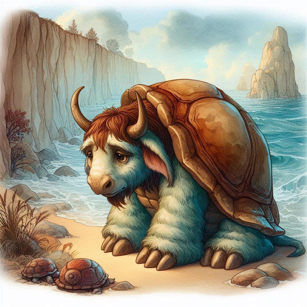 Автор: Олег ПелипейченкоУ Кэрролла описания Черепахи Квази нет, поэтому будем руководствоваться опытом Тенниела, который скрестил в облике этого персонажа черепаху и телёнка. Сеть добавила своих черт (в частности - рога, что вполне логично, и кое-где повышенную лохматость), но, по-моему, это даже хорошо - теперь каждый может выбрать себе картинку по вкусу.