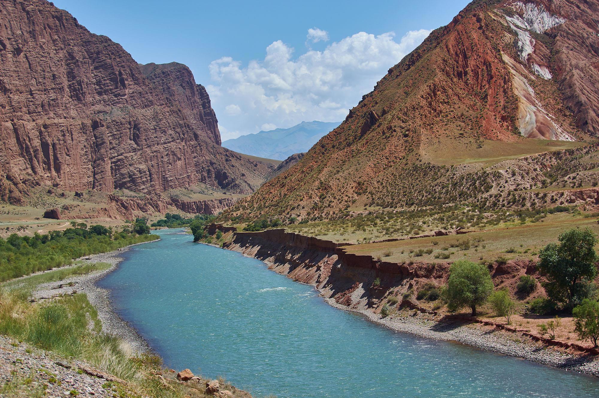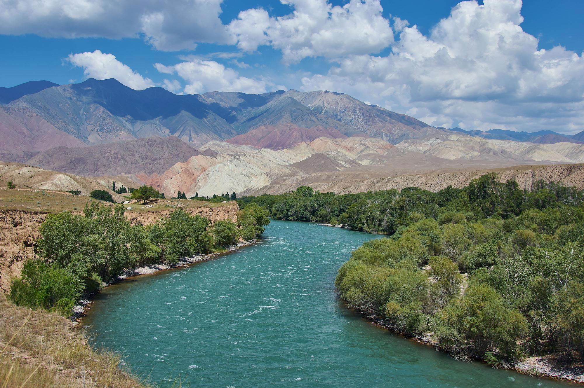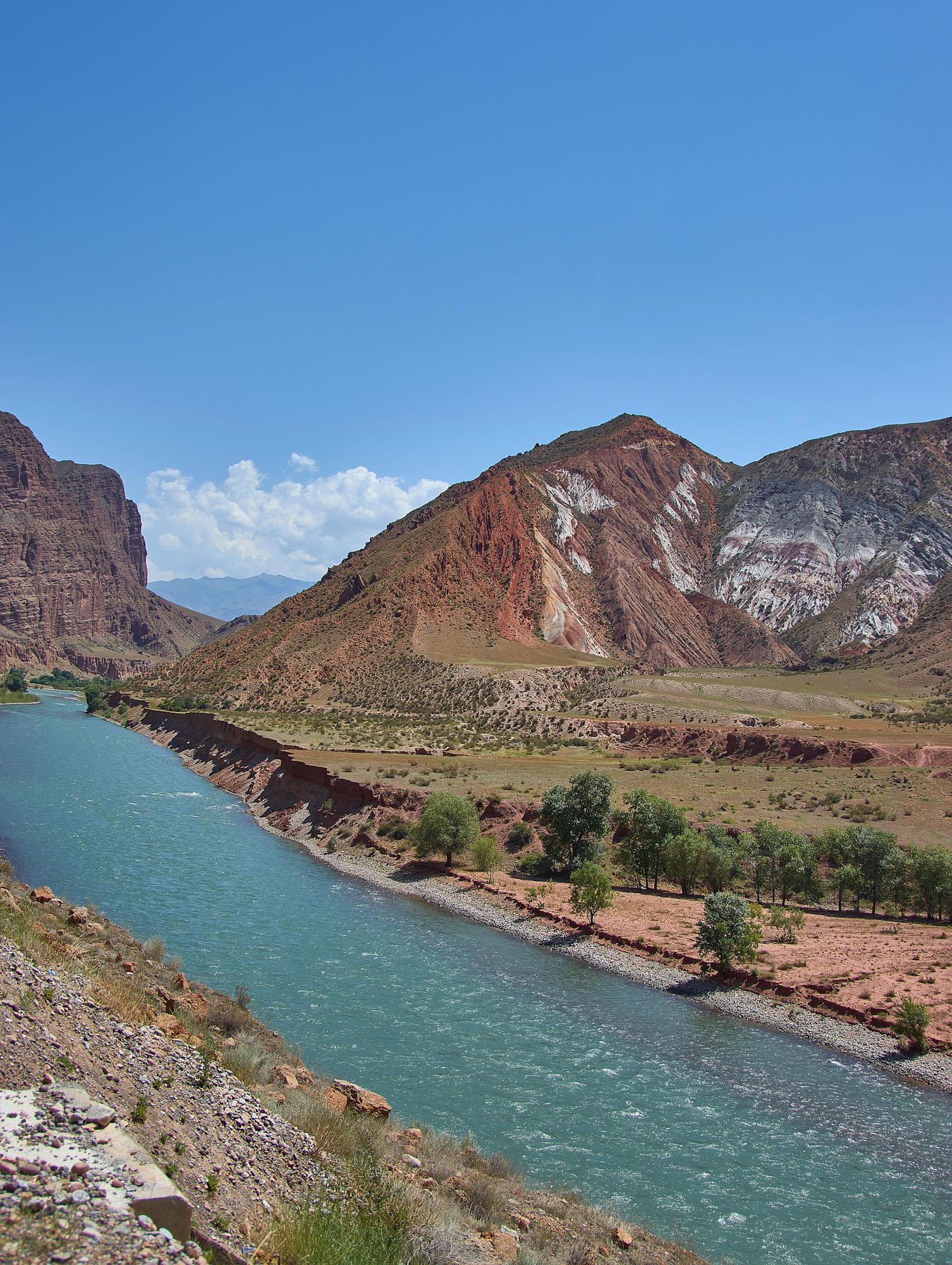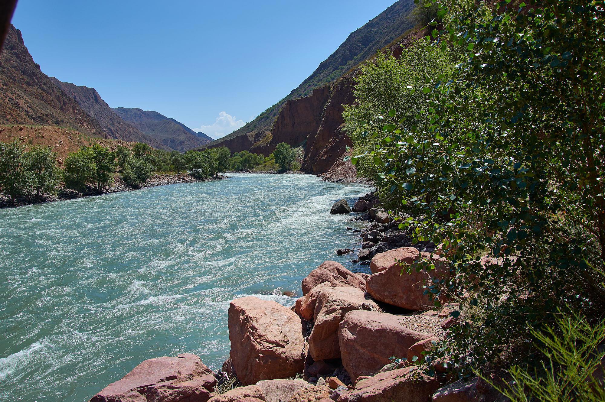 После поворот на север мы до конца дня так и будем ехать вдоль реки Kekemeren. Горы немного расступились в стороны, вдоль реки растут деревья. Мы остановились на привал, чтобы перекусить.