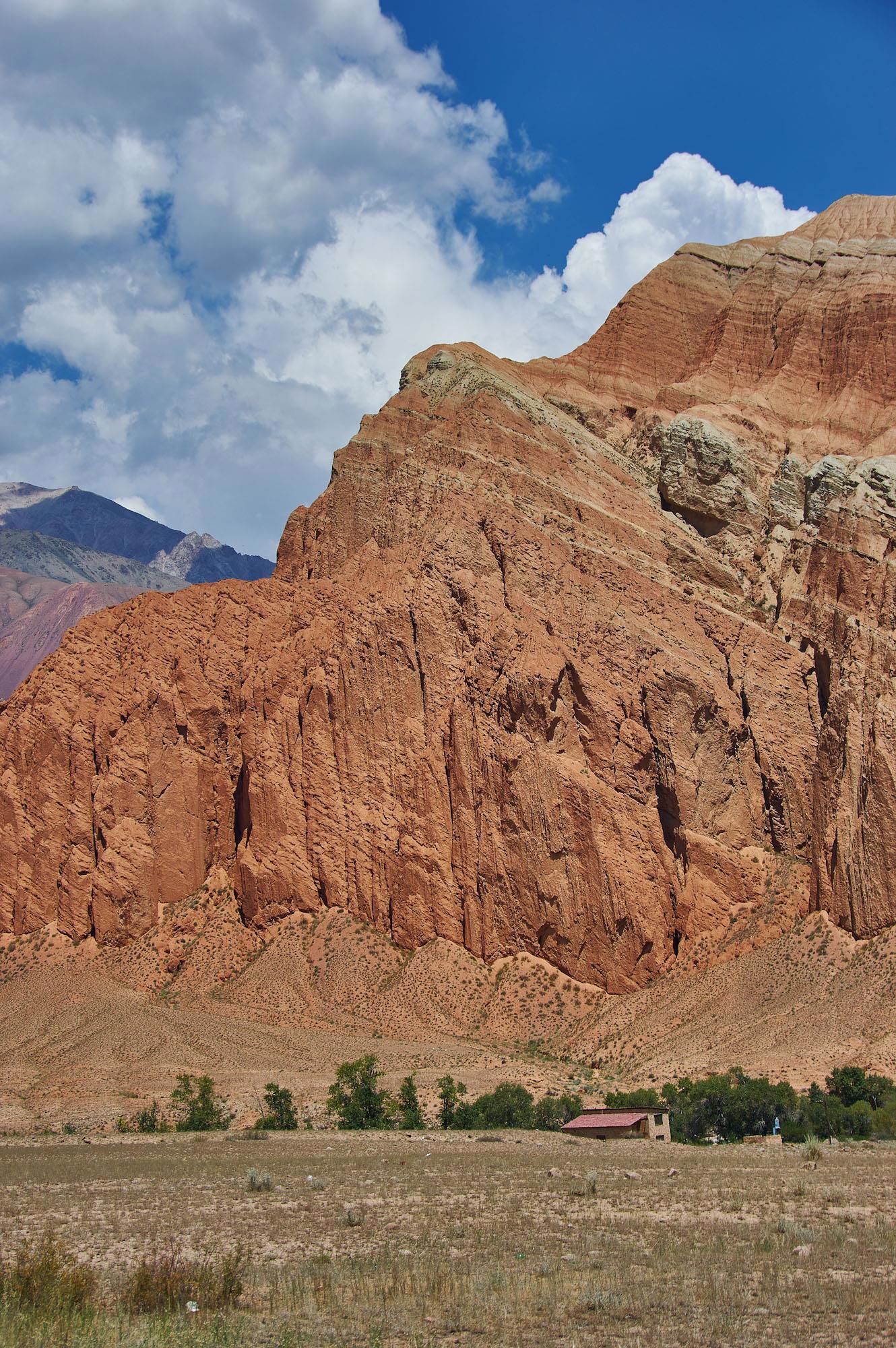 Вдали показался небольшой поселок Кызыл-Ой. Очень живописный вид не прошел мимо. Одна из причин относительно неспешной езды - постоянные остановки для фотосъемки.
