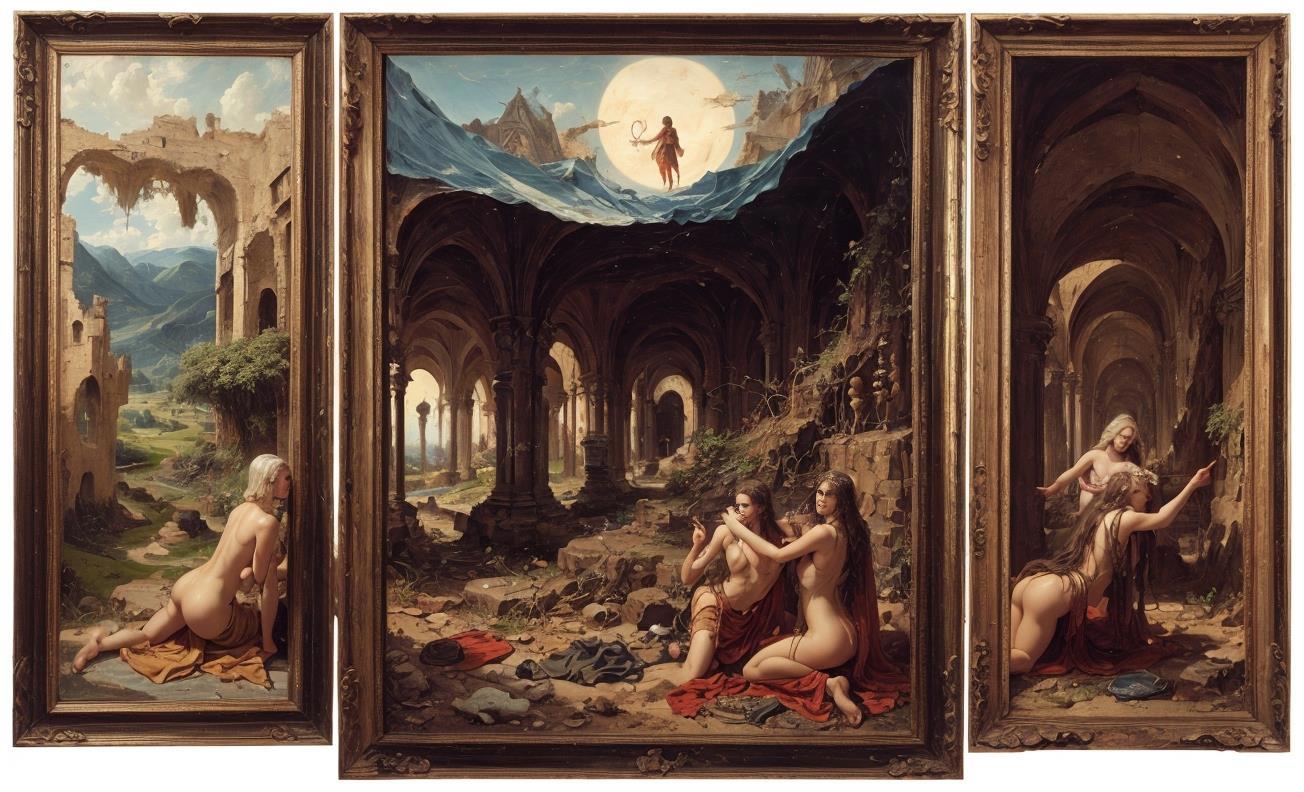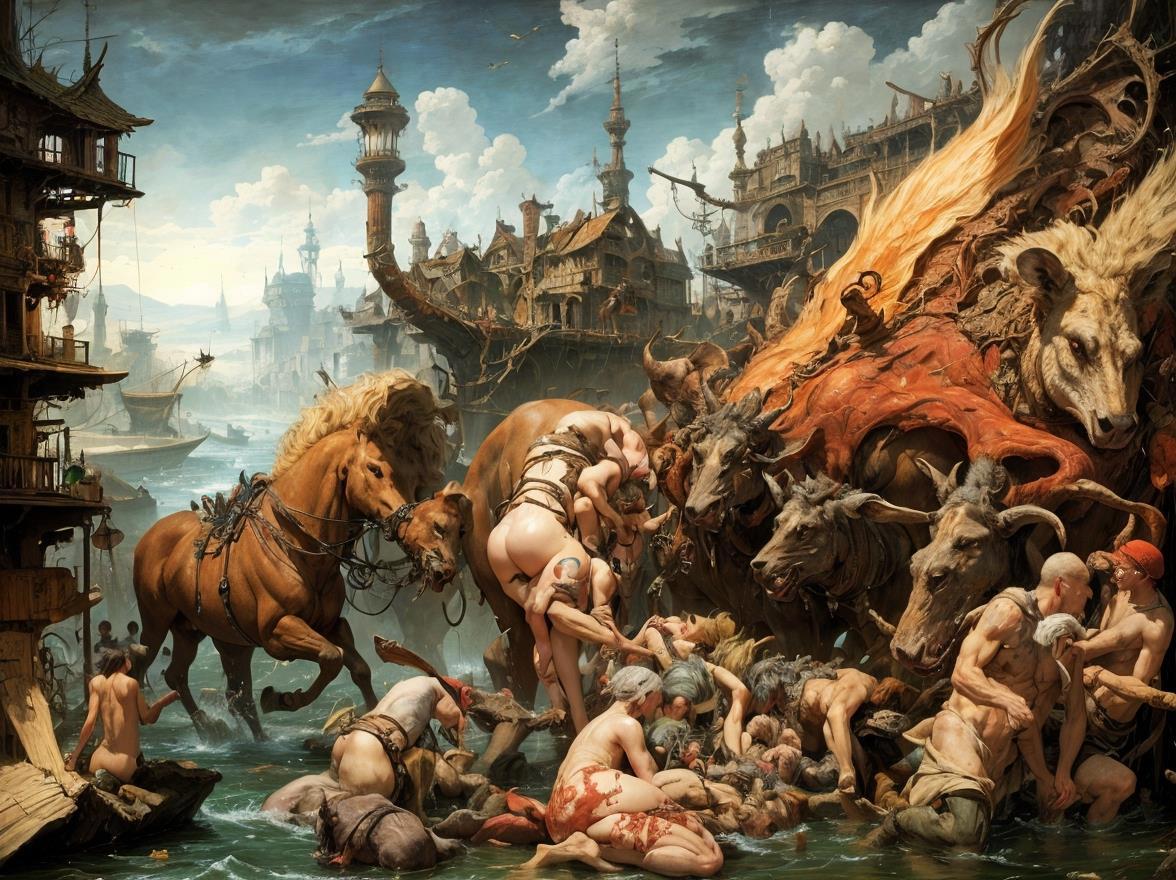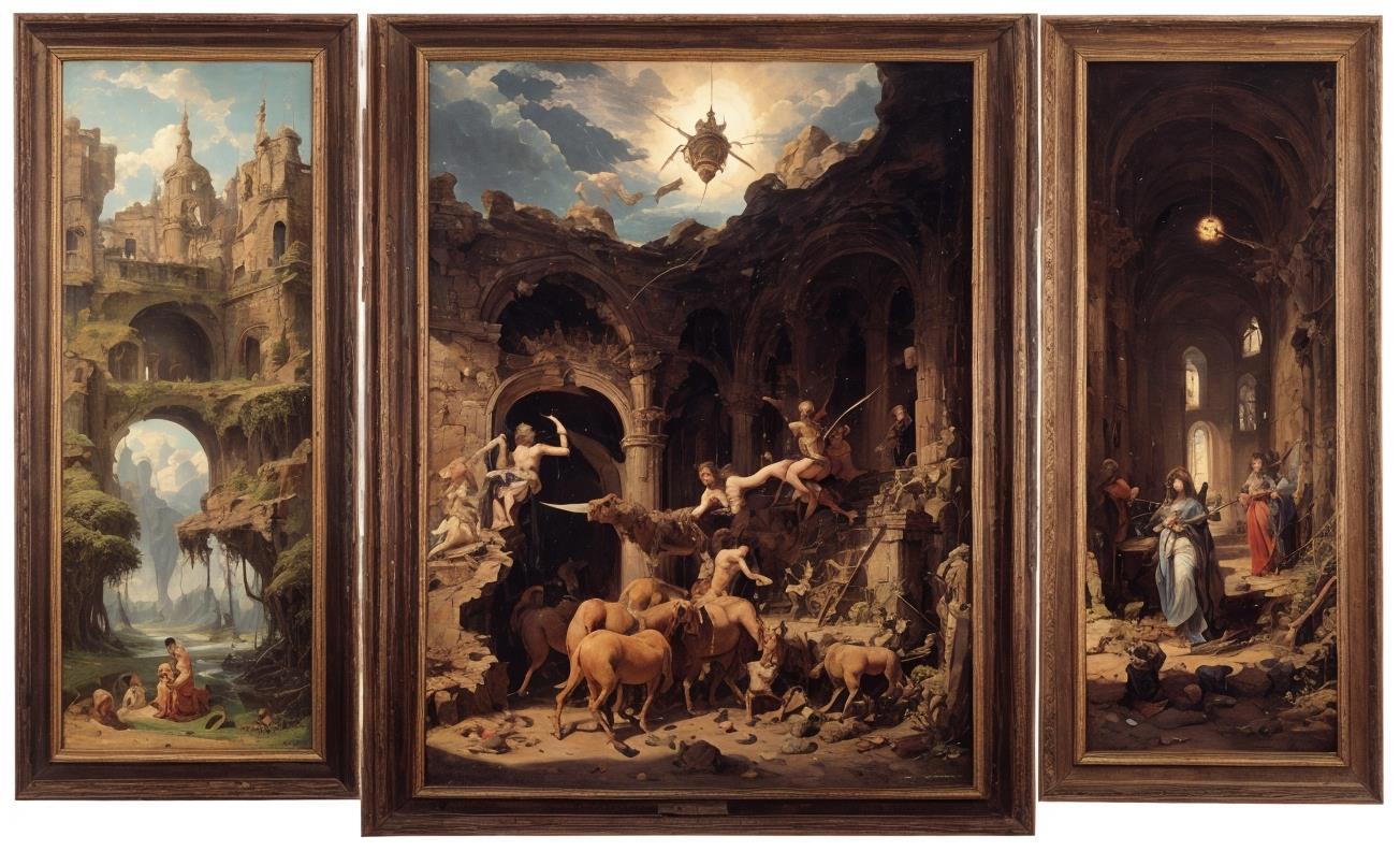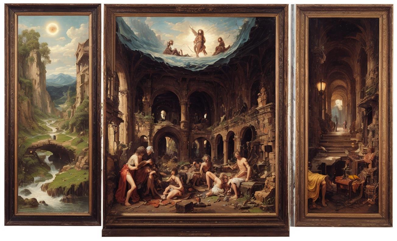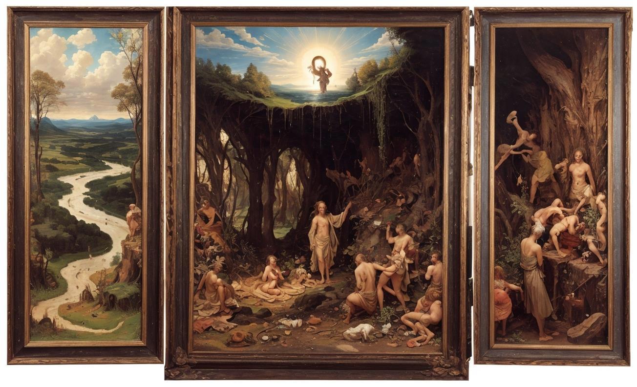 Автор: Сергей ЧеЕще одна попытка подойти к снаряду Иерониму. На этот раз не только через текст, но и скормив пару иллюстраций. Видно, что нейросеть пытается копировать форму, наплевав на содержание. Не говоря уж о смыслах и символах. То есть ведет себя как попугай. Кто там говорил об искусственном разуме?