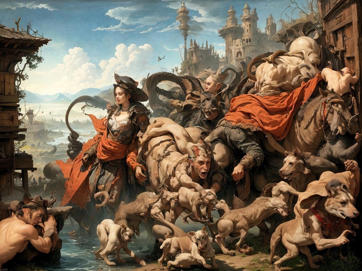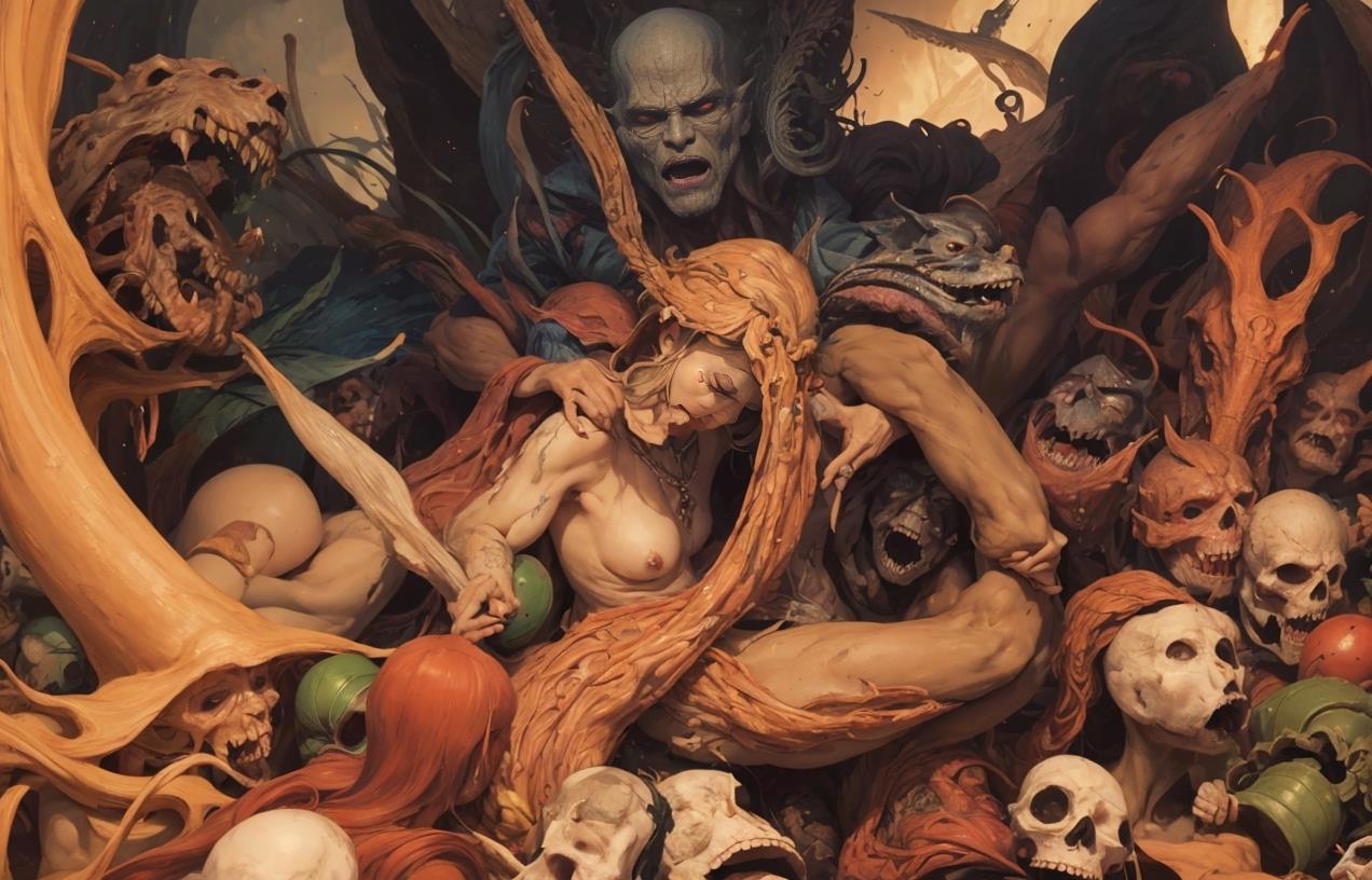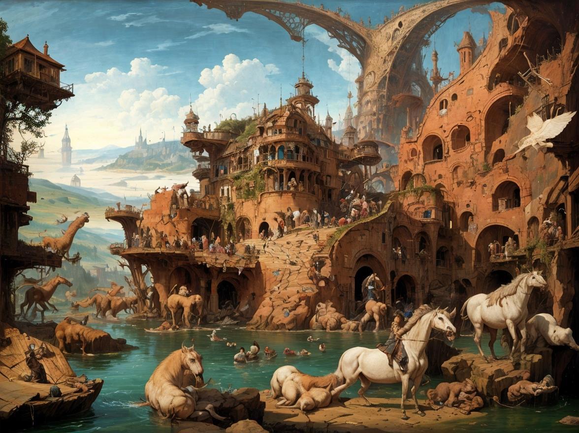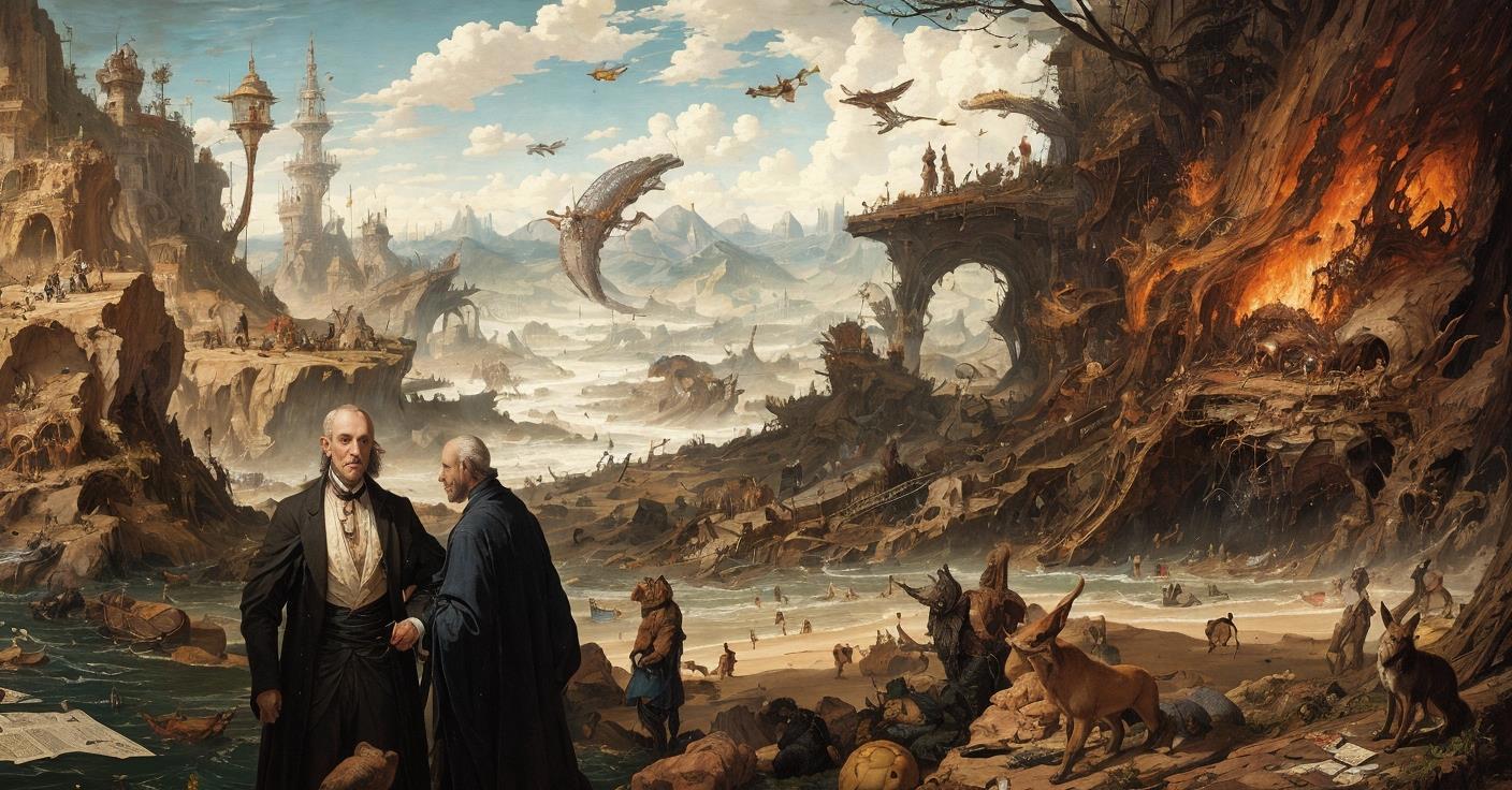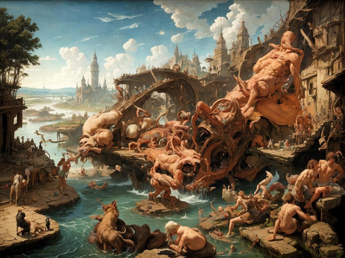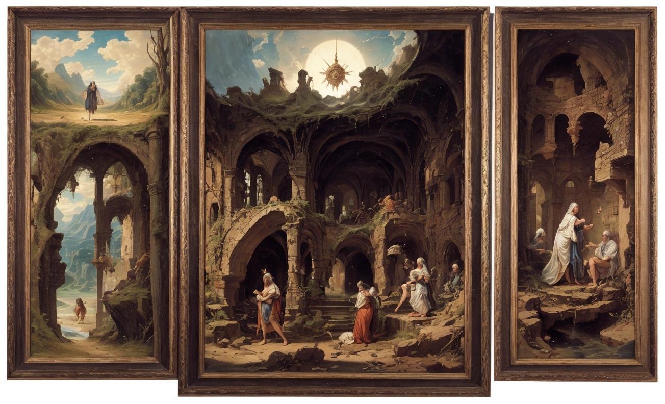Автор: Сергей ЧеЕще одна попытка подойти к снаряду Иерониму. На этот раз не только через текст, но и скормив пару иллюстраций. Видно, что нейросеть пытается копировать форму, наплевав на содержание. Не говоря уж о смыслах и символах. То есть ведет себя как попугай. Кто там говорил об искусственном разуме?