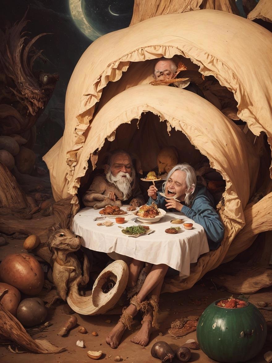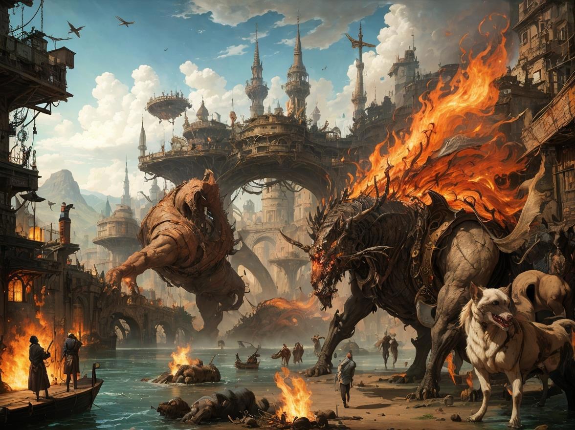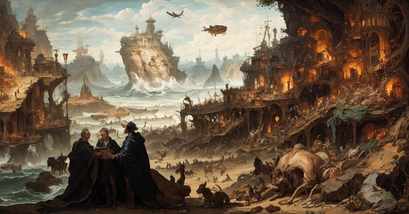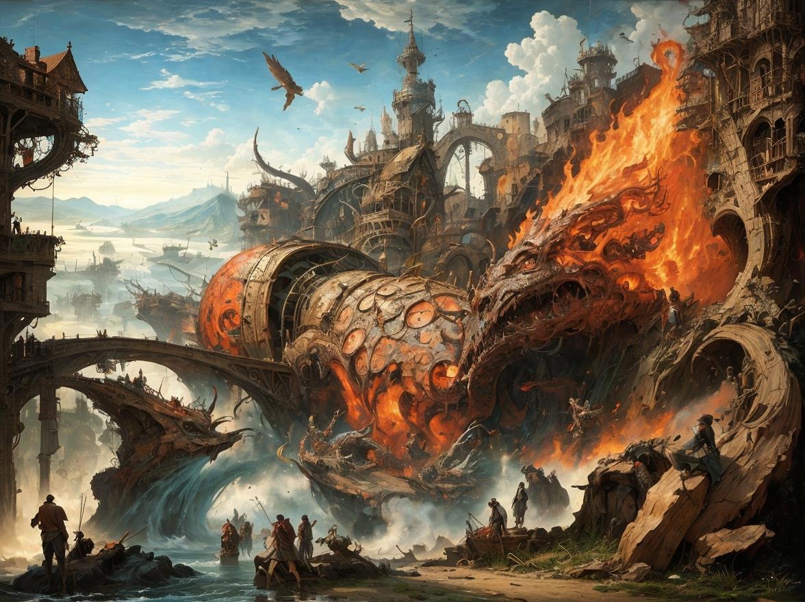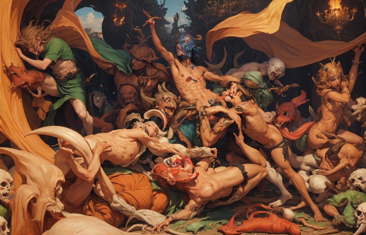 Автор: Сергей ЧеЕще одна попытка подойти к снаряду Иерониму. На этот раз не только через текст, но и скормив пару иллюстраций. Видно, что нейросеть пытается копировать форму, наплевав на содержание. Не говоря уж о смыслах и символах. То есть ведет себя как попугай. Кто там говорил об искусственном разуме?