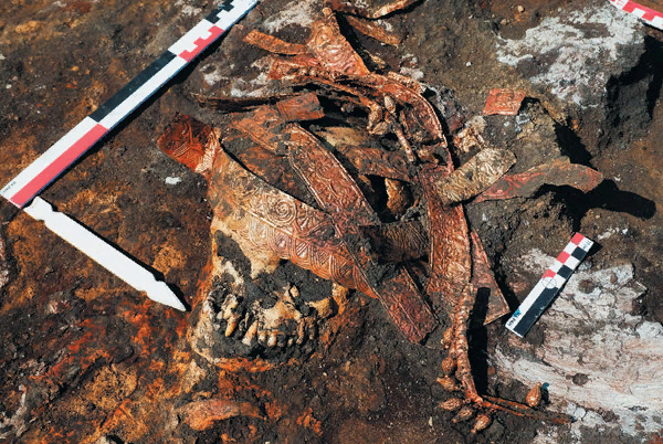 У другой стены были погребения двух женщин старшего возраста. Скифянки были уложены на деревянные ложа, застеленные подстилкой из трав, такие же травы укрывали импровизированные "подушки" из земли.