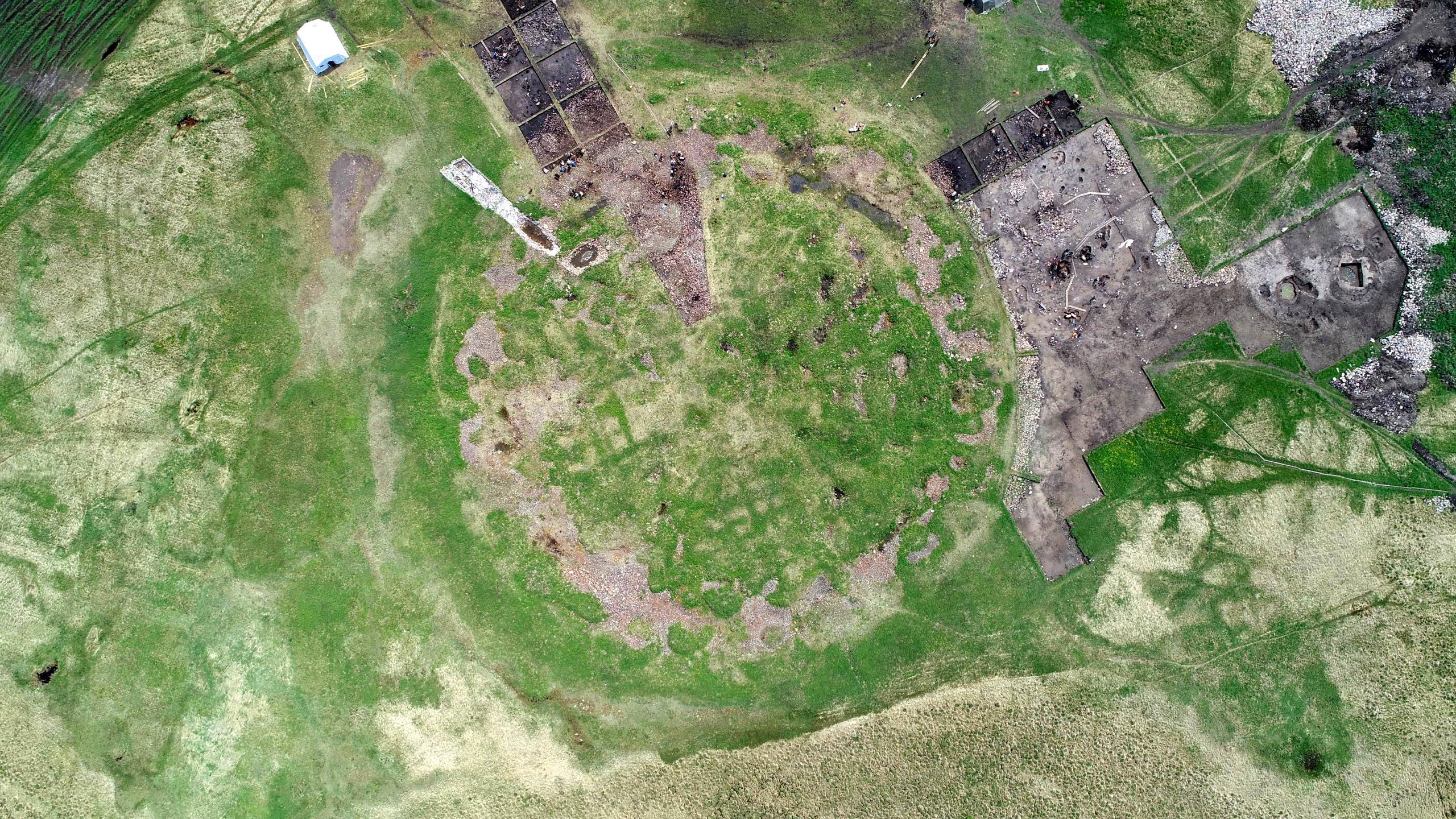Курган Туннуг-1 часто называют исключительным не зря. Начать нужно с размеров, наверное. Диаметр этого сложного инженерного сооружения 140 метров. Надежды археологов на чудесные находки, включая сохранившуюся органику, поддерживает вечная мерзлота. Начало раскопок по периметру дало мало находок. Это была керамика, наконечники стрел, ножи, китайская монетка, ещё кое-что по мелочи.