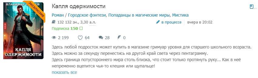 Автор: Владимир БатаевСобрался выкладывать новую главу книжки и заметил, что в данный момент её объём вот такой, как в заголовке. Чисто случайно совпало, не подгонял число знаков.