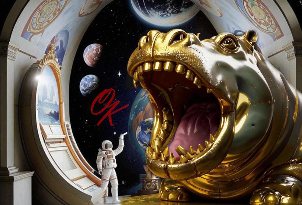 "Сувенир", как выразился экскурсант, действительно, был странный. Представьте себе фигуру бегемота, размером с крупного кота, а на вид из чистого золота. При этом бегемот широко разинул пасть, а из его задницы торчала явно человеческая голова. Скульптура была выполнена исключительно качественно, были заметны все тонкие детали. Например, была четко видна гримаса ужаса на лице человека.