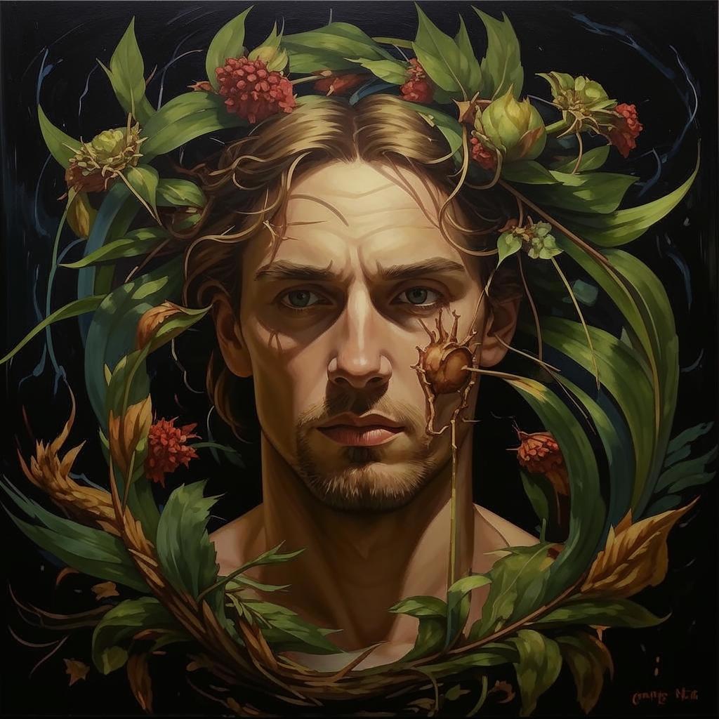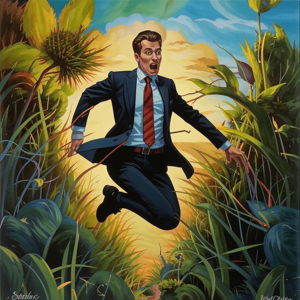 (оказалось, затыка - в четвёртом четверостишье. К удивлению, ии-художник был не против, чтобы я сам бросился в терновый куст)