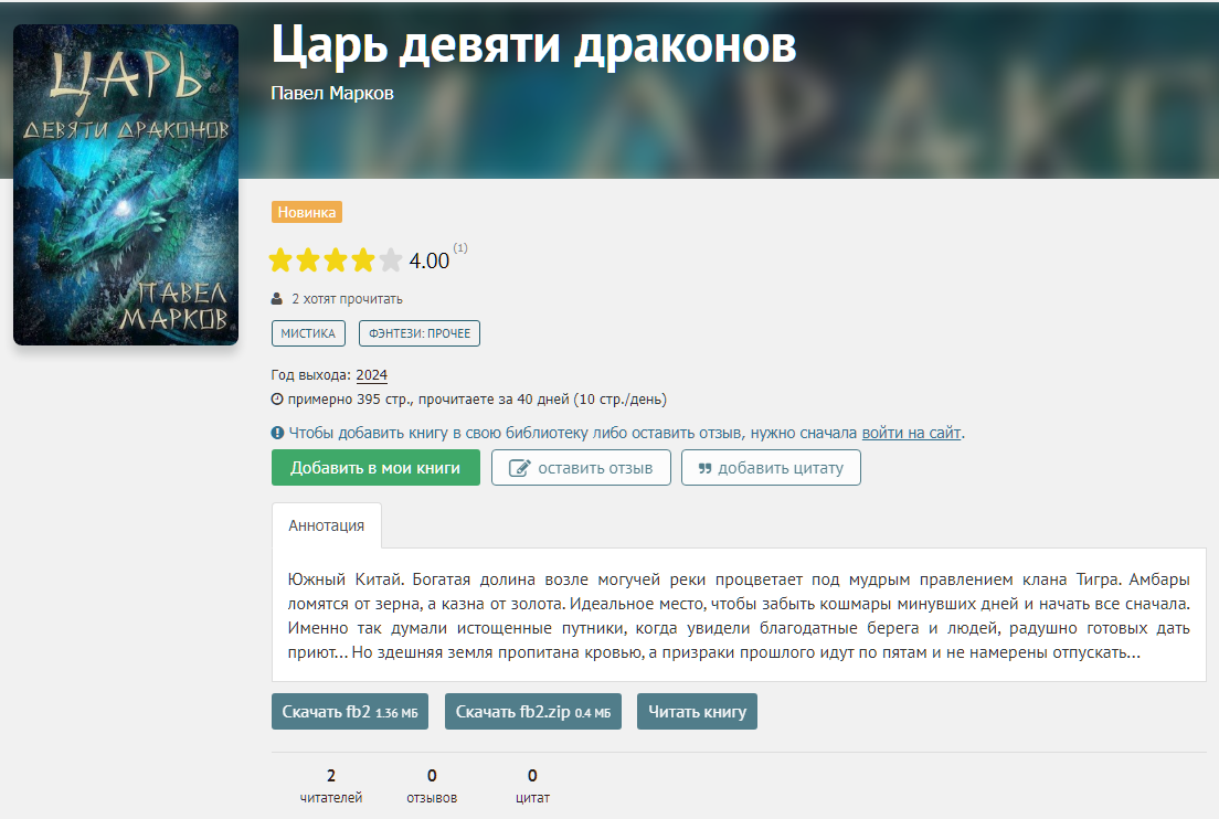Вчера я, наконец, поставил точку в романе «Царь девяти драконов». Аж гора упала с плеч. А сегодня утром книга уже разлетелась по всем пиратским сайтам😂 И это притом, что на романе стояла защита от копирования и запрет скачивания. Меньше полусуток — и вуаля. Видать давно «пасли» и ждали, когда закончу. На удивление даже не расстроился. Скорее наоборот — такое внимание весьма польстило.