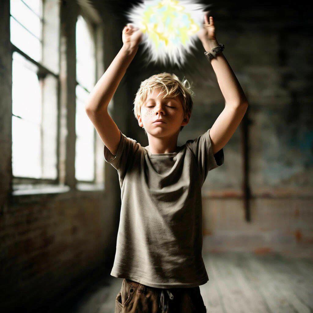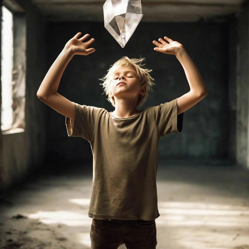 Но  затем голос его стал более уверенным и громким. Генка выпрямился во  весь рост и вытянул руки высоко над головой. Кристалл засверкал еще  сильней, озарив все помещение. Он светился, излучая настолько яркое  сияние, что заставил зрителей зажмуриться и прикрыть глаза рукой.