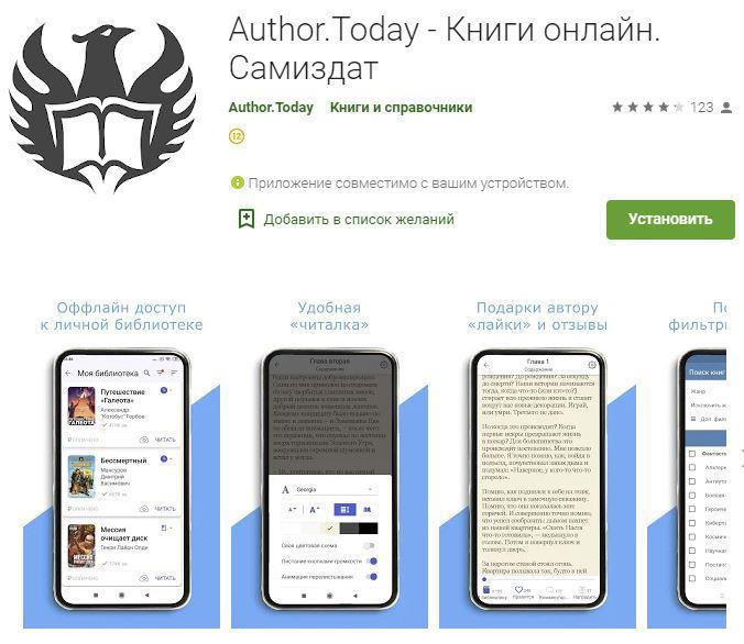 1) Приложение легко ищется через поиск "гугл плей" на устройстве хоть на английском напиши ключевые слова "Автор Тудей", хоть на русском.